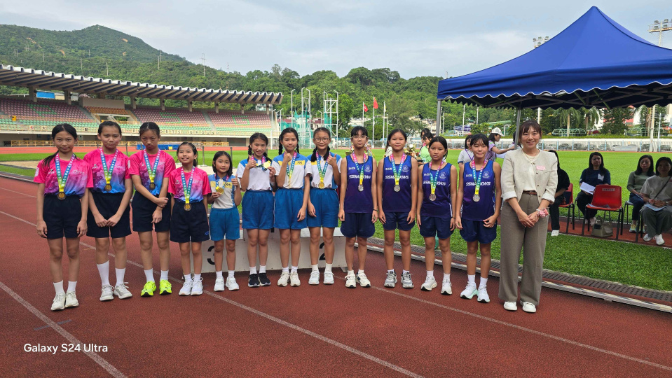 本校田徑隊同學參加港九街坊婦女會孫方中書院友校接力比賽,榮獲女子組冠軍。