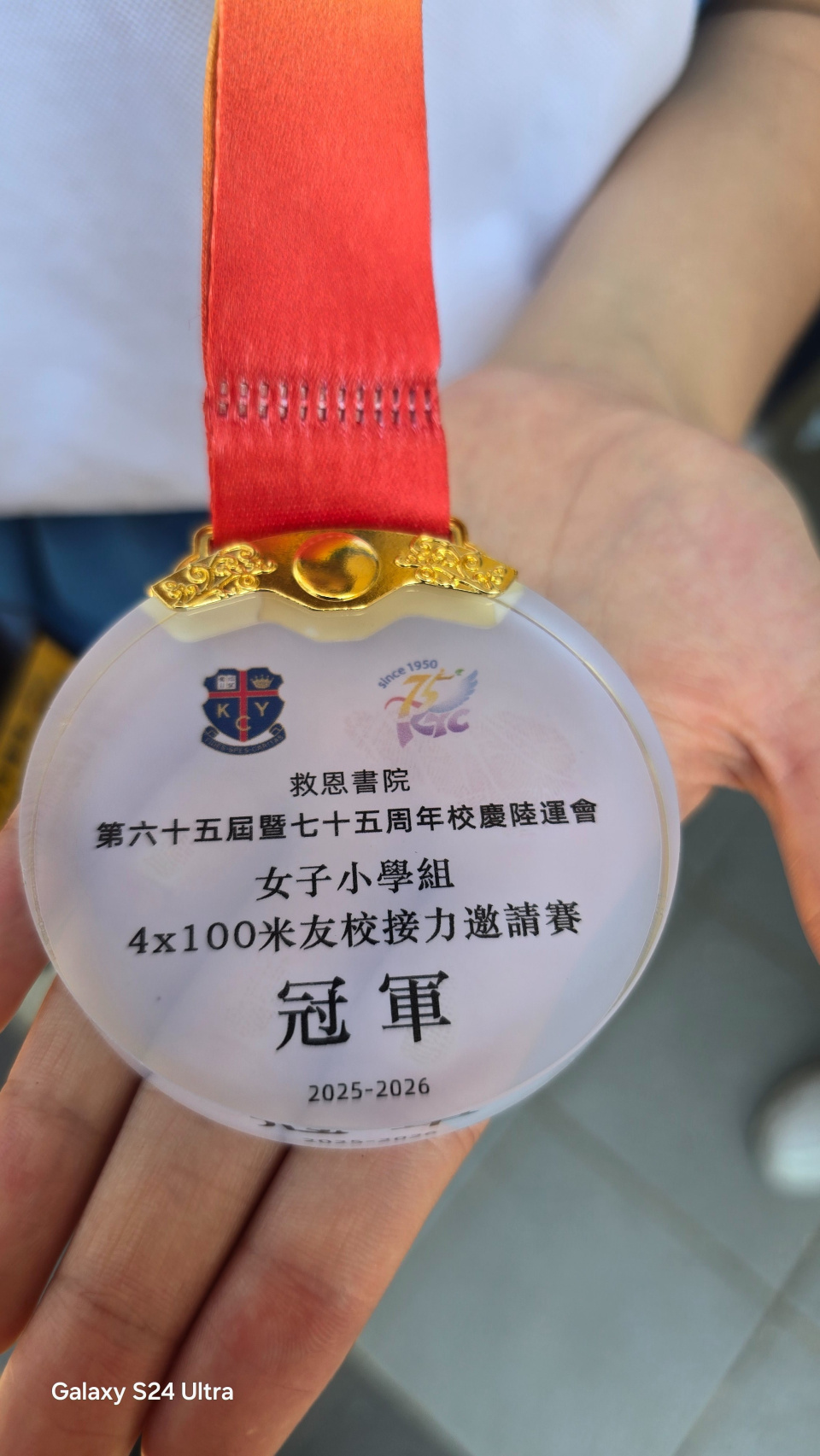 本校田徑隊同學參加救恩書院友校接力比賽, 榮獲女子組冠軍。