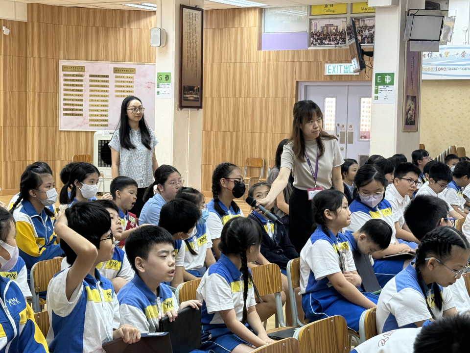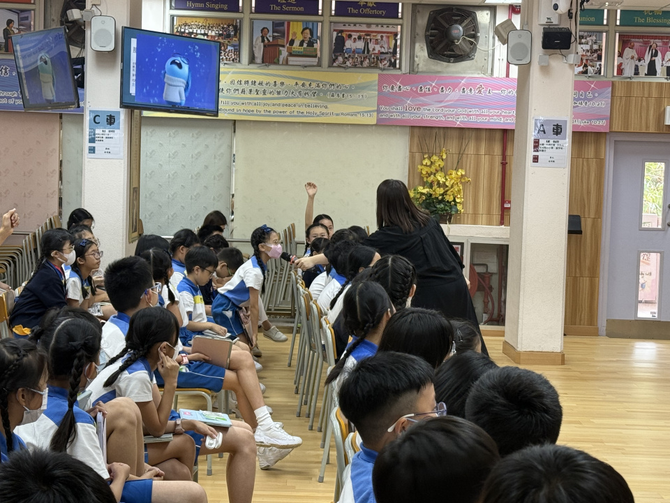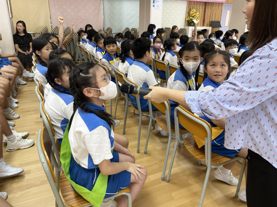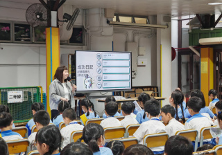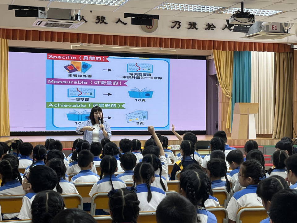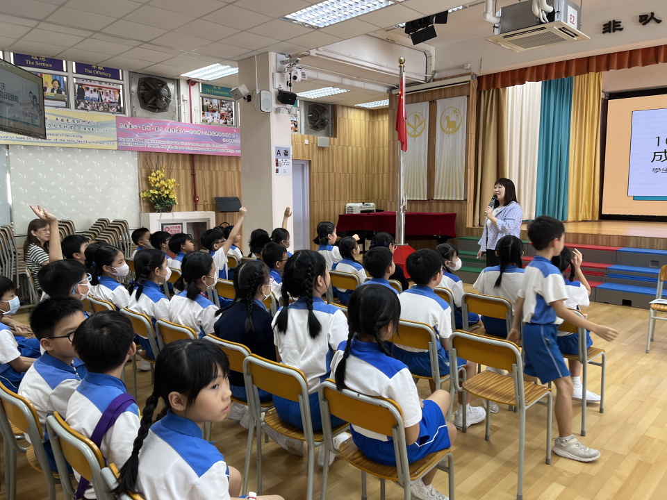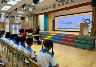 學生輔導主任林姑娘向同學們介紹了本年度 的校本輔導活動——《100天成功日記挑戰》。同學們對此表現出極濃厚的興趣,紛紛表示願意參與。我們也邀請了家長們一起嘗試完成這項挑戰,現時已有許多家長積極響應!希望同學們完成挑戰後,將日記交給輔導組,以換取「獎勵襟章」,即可以在學期結束前在校內佩戴。此外,同學們和家長可以一起合作,在學期結束前完成挑戰,從鄧校長手中領取獎狀呢!