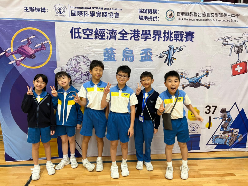 4A古知言、4A羅筠澄、4C蔣栢然、5A陳司源、5A陳日熹、5C伍泳芊代表學校參加「藍鳥盃低空經濟全港學界挑戰賽」,當中6A古知言奪得最佳神射手第三名,希望同學未來能繼續勇闖高峰。