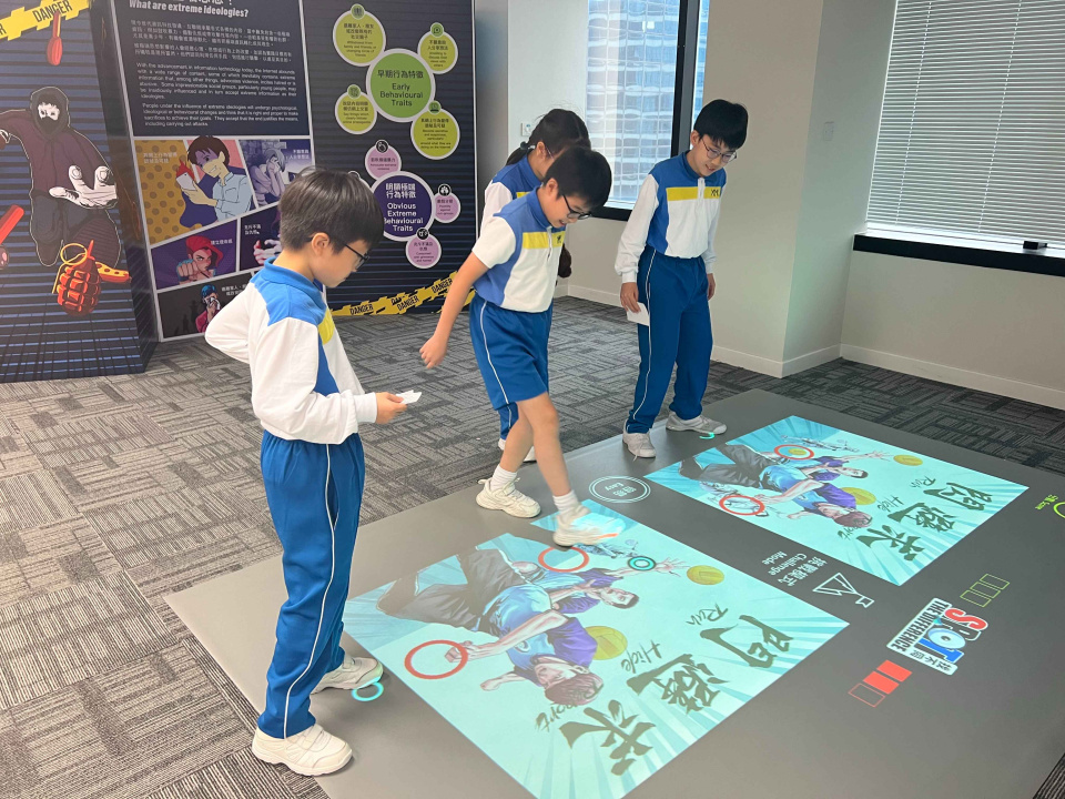 四至六年級的服務生們走進全港首個以反恐為主題的體驗館–安全社區體驗館,沉浸式學習安全知識。透過特色展區及互動體驗項目,包括虛擬實境、互動全息影像裝置、模擬飛行等,體驗如何化解恐襲風險,保障自身及社區安全,收穫豐富。