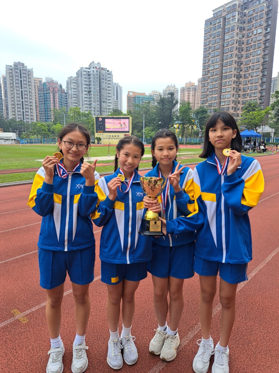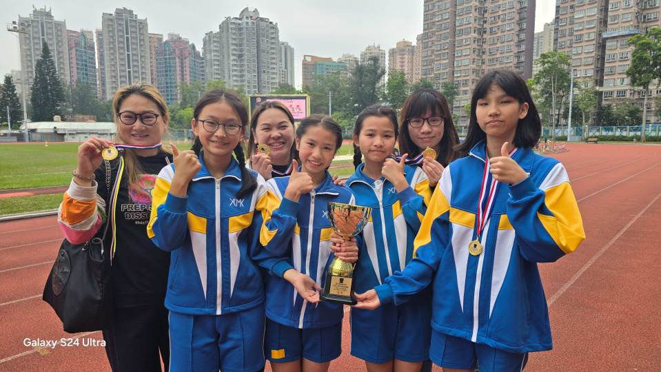 本校田徑隊同學參加神召會康樂中學友校接力賽, 榮獲女子組冠軍。