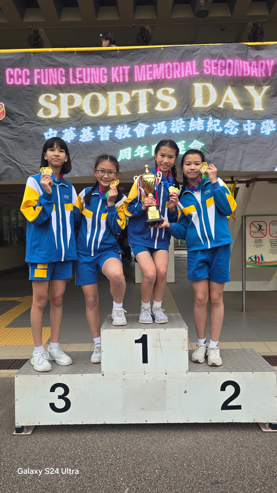 本校田徑隊同學參加中華基督教會馮梁結紀念中學友校接力賽,榮獲女子組冠軍。