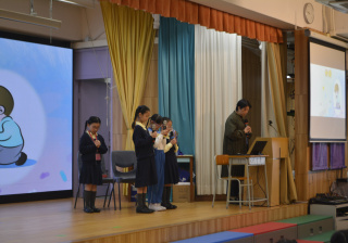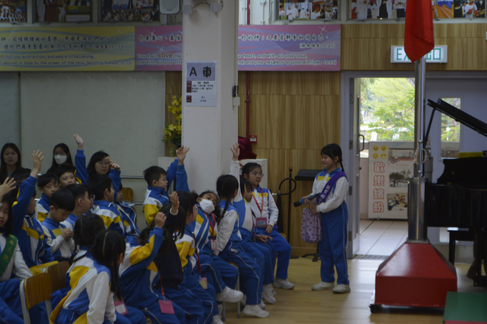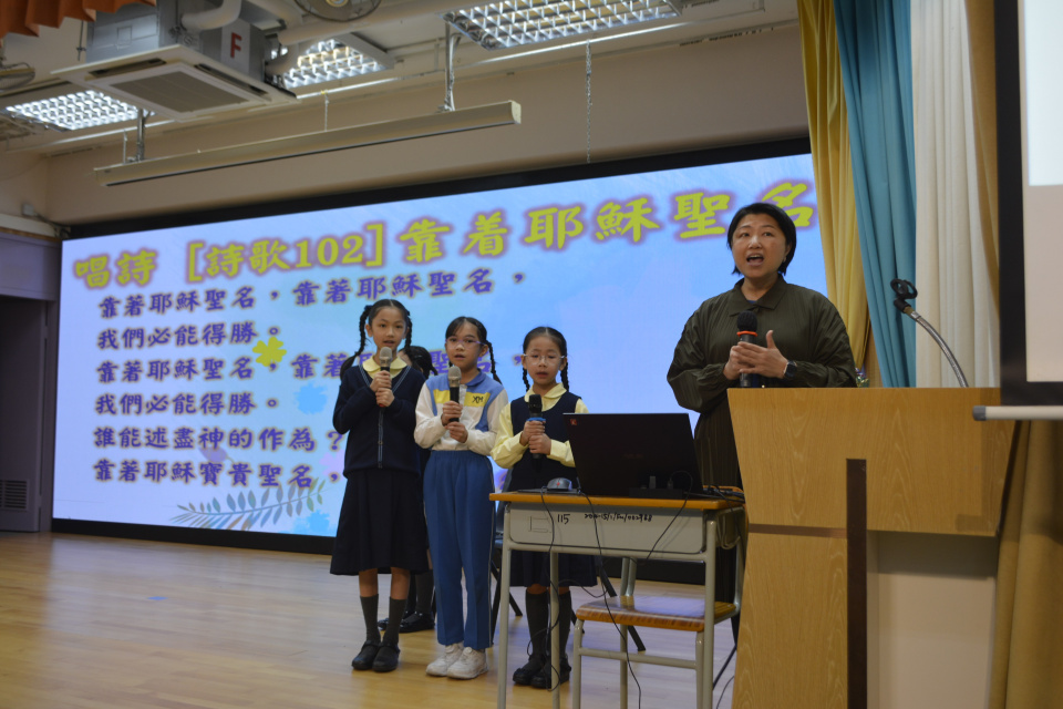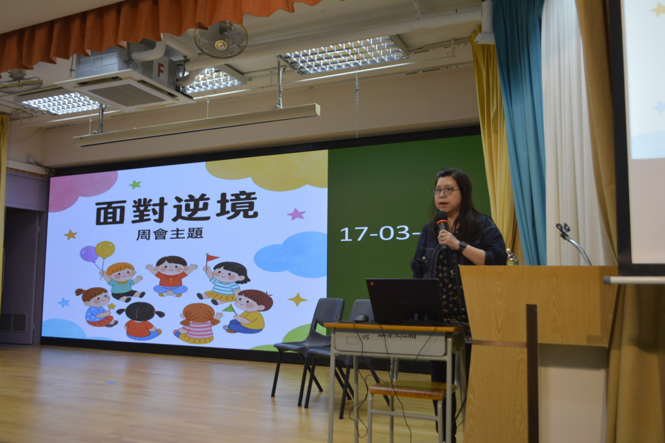 本校於3月17日舉行了本學年第五次周會及頒獎禮。高年級周會由鄭惠菁老師負責主講,低年級周會由陳少娟老師主講,主講題目為「面對逆境」,周會經文記載在哥林多前書10章13節「你們所遇見的試探,無非是人所能受的。神是信實的,必不叫你們受試探過於所能受的。在受試探的時候,總要給你們開一條出路,叫你們能忍受得住。」