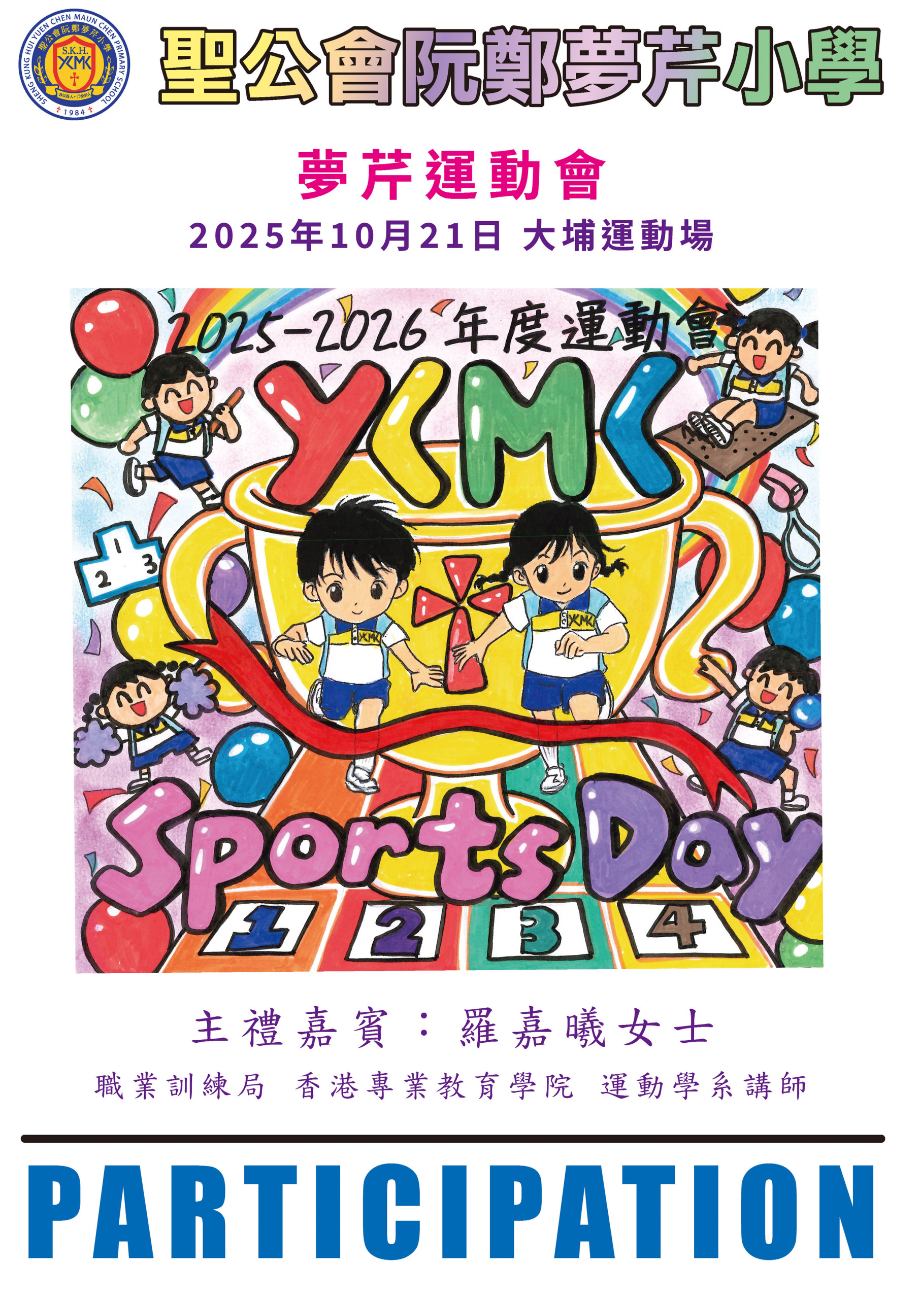 為了迎接運動會的到來,體育科舉行了「運動會場刊封面設計比賽」。同學們非常踴躍參與是次比賽,學校收到的作品都非常優秀。最後,當中有10位同學的作品脫頴而出獲獎,這些獲獎的作品已設計成海報,並張貼在學校各樓層。