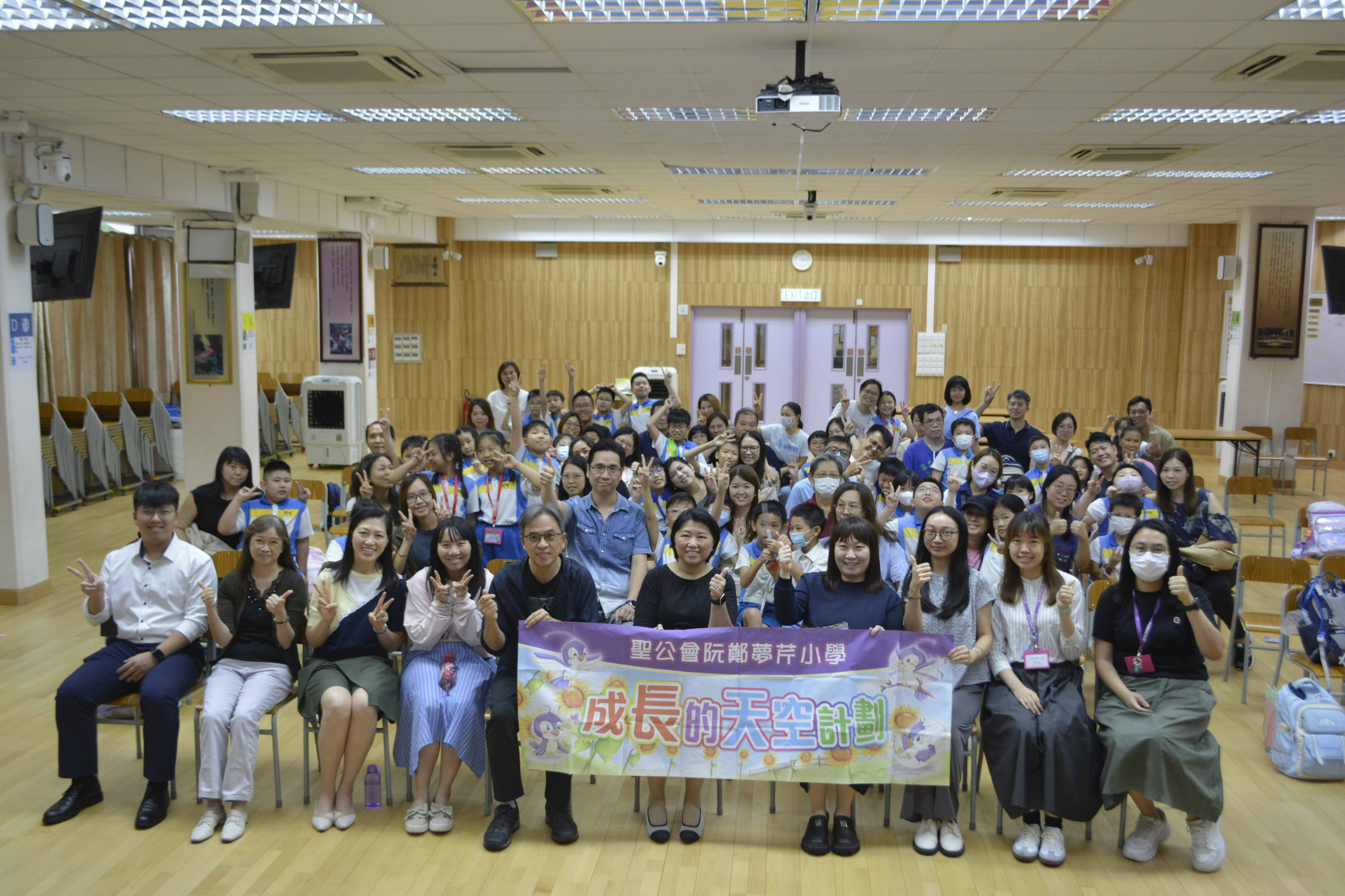 本年度「P4成長的天空輔助計劃」正式開展。41位學員與家長 一起參與啟動禮,共同了解成長的天空計劃。同時,四年級的 班主任在啟動禮上為學員頒授名牌,學員進行宣誓並朗讀立志 宣言。當天還有優質家長工作坊,讓家長對本計劃有更深入的 了解,也增加了家長對抗逆力、樂觀感及幸福感等正向教育元 素的認識。