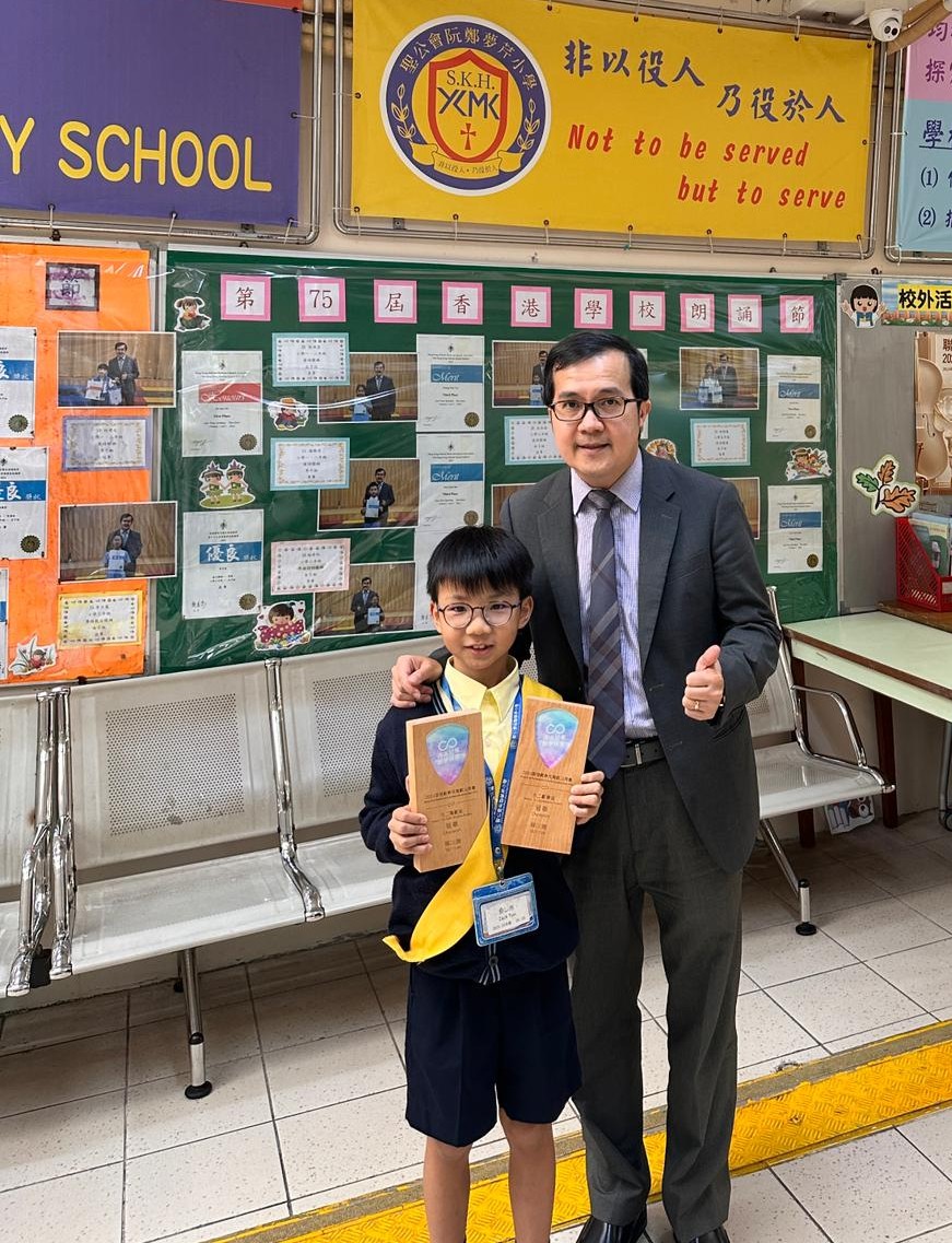 恭賀2B 蔡以善同學於2024香港數學及奧數公開賽小二奧數組及數學組比賽均取得冠軍!