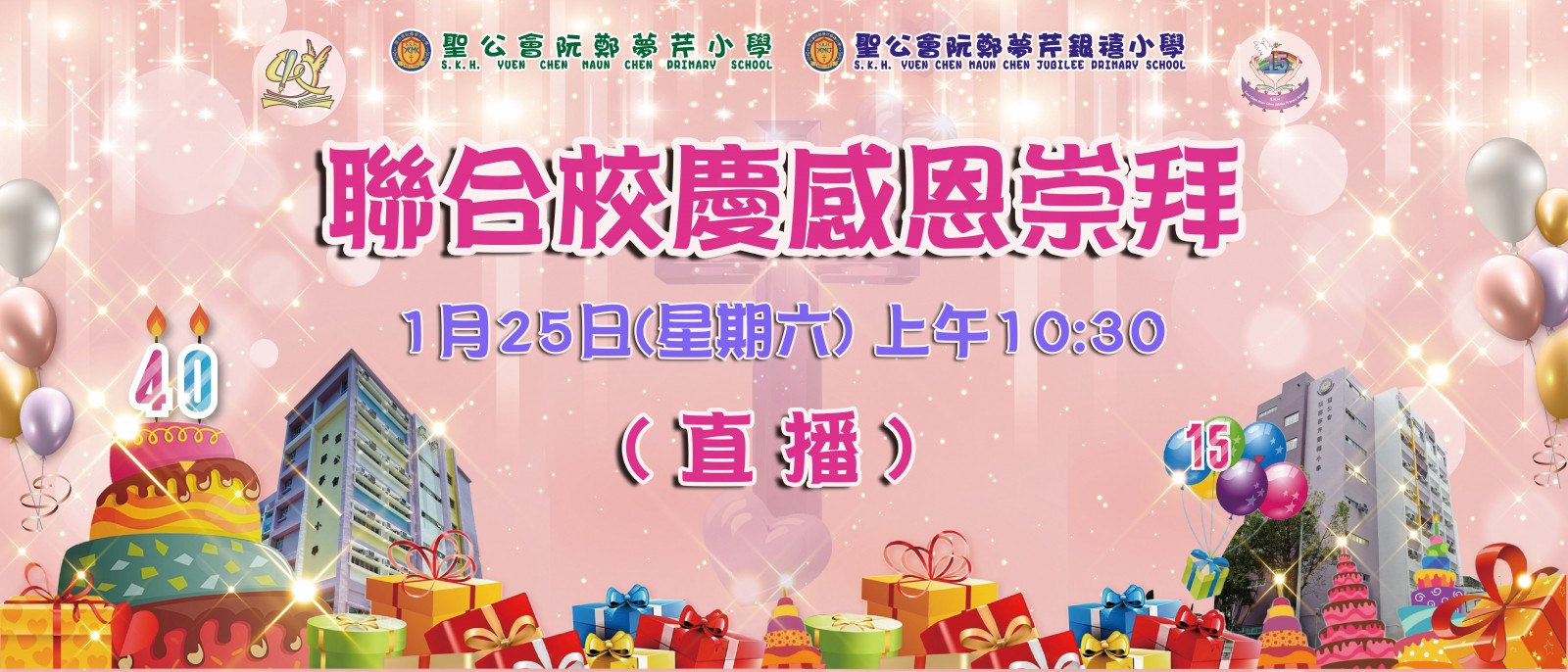 親愛的家長和同學,夢芹40周年校慶崇拜將於1月25日星期六上午10:30假聖公會靈風堂舉行,屆時我們會透過YouTube頻道直播崇拜,頻道是SKHYCMCPS eLearning,希望家長和同學也踴躍支持收看,一同讚美上帝!