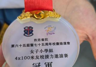 本校田徑隊同學參加救恩書院友校接力比賽, 榮獲女子組冠軍。