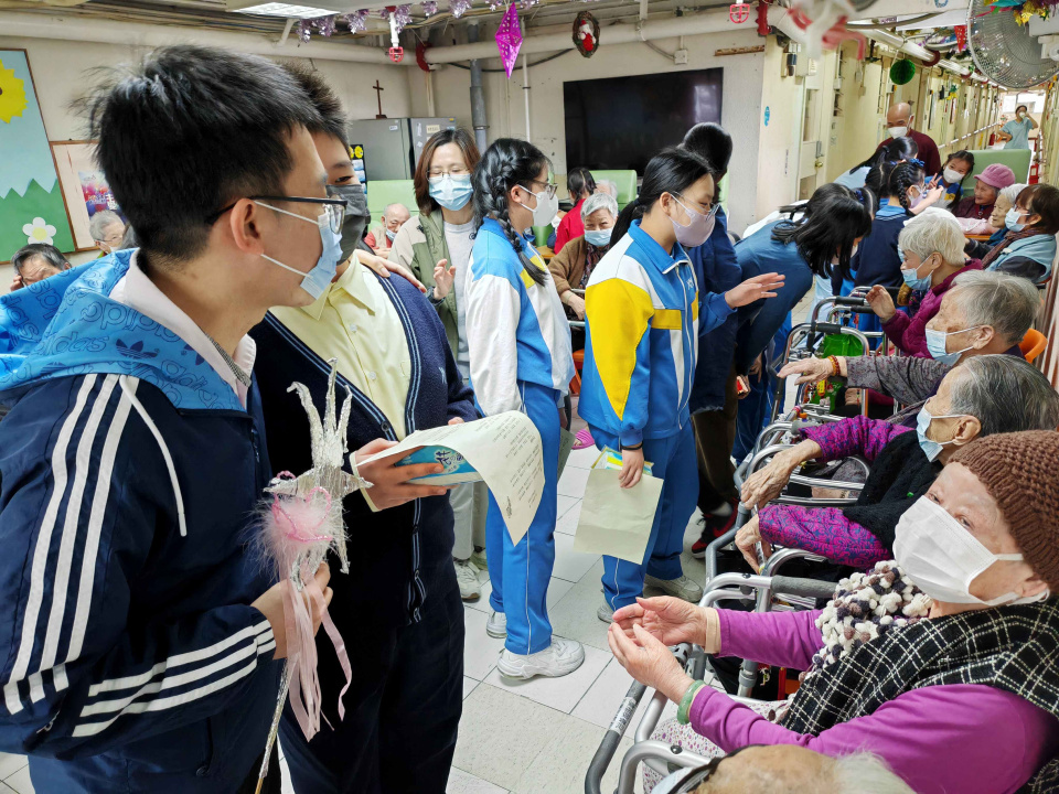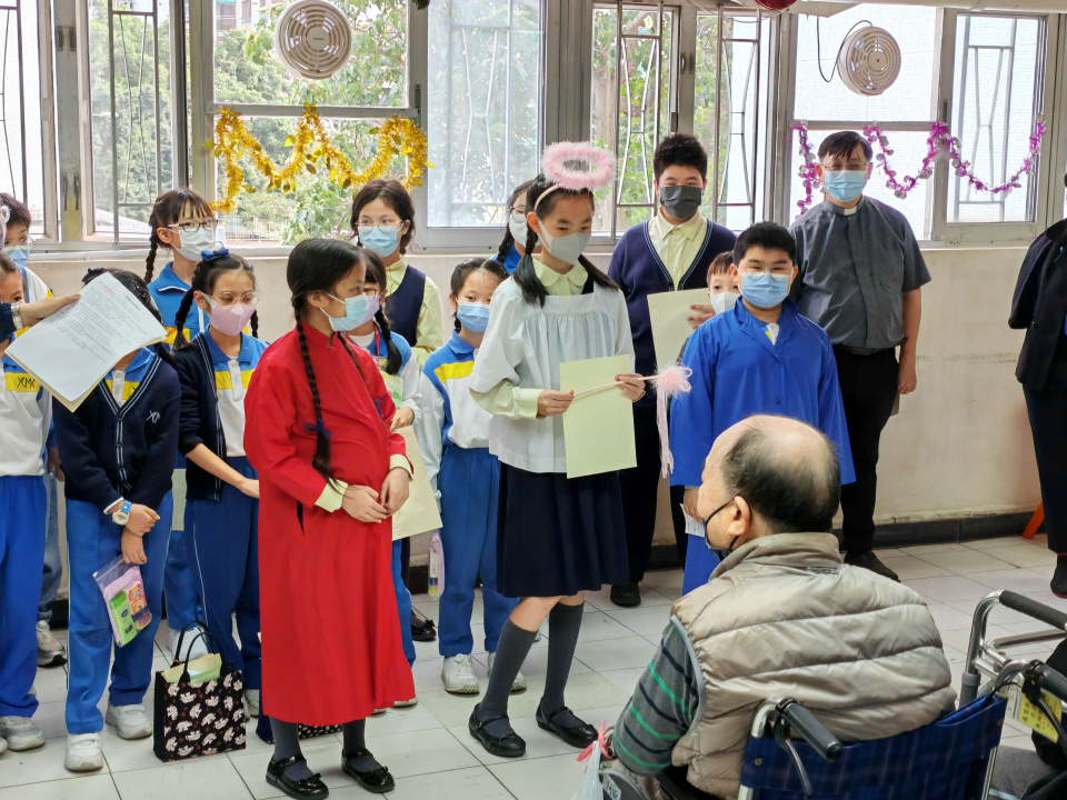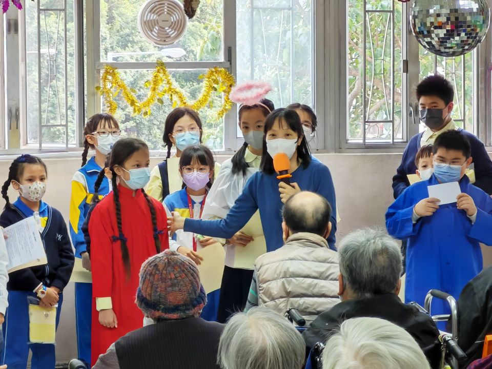 在聖誕節這個普天同慶的大日子,歐陽牧師、鄧校長和夢芹團契學生帶着禮物,前往廣福頤養院報佳音,與長者表演話劇及進行問答遊戲。同學們主動與長者交談,將關懷與愛帶給長者,將基督降生的大好訊息傳揚開去。