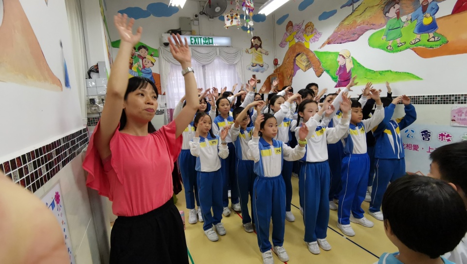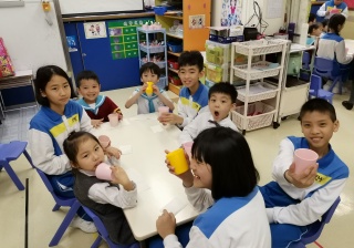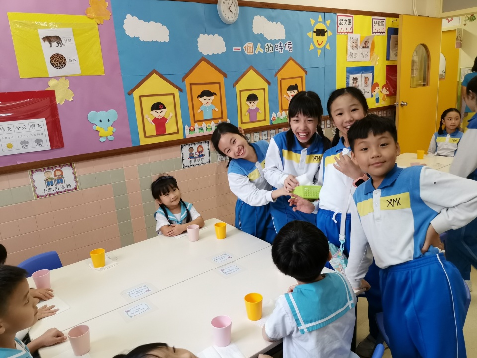 團契學生到幼稚園探訪,我們和弟弟妹妹一起唱歌,聆聽復活節的故事。然後我們又一同製作合作畫及分享茶點,互相有說有笑,很是開心。