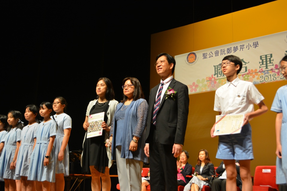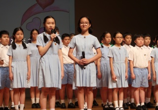 在致謝及感恩頌歌環節中,六年級同學以悦耳動聽的歌聲感謝父母的養育之恩、老師悉心的教導及天父的看顧,帶領畢業禮至高潮,場面令人感動。