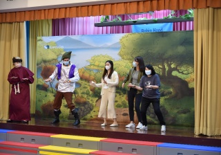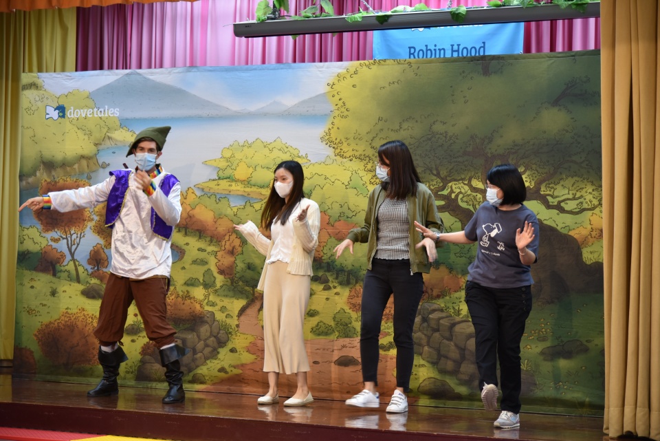 First we watched an English film in the classroom. Next we redeemed our E-Tickets for prizes in the English room. Then we enjoyed an English drama ‘Robin Hood’ in the hall. We had so much fun on English Day.