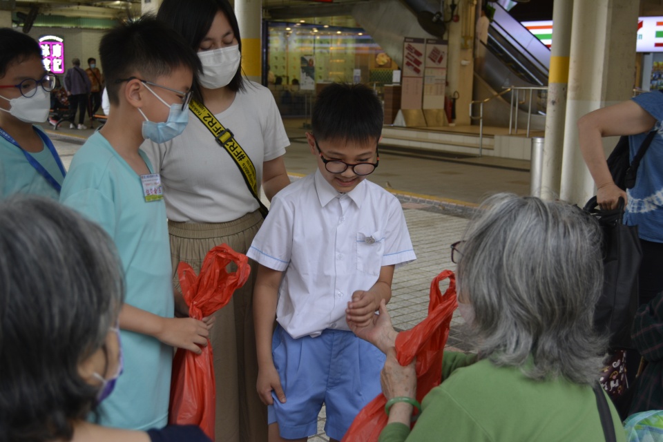 四年級「成長的天空」學員到大埔廣福邨進行戶外服務活動,30位學員分組向邨內的老人家送上小小禮物包,廣福邨的街坊都讚賞學員勇於嘗試及帶給他們歡樂,老人家們也鼓勵學員勇敢地把心意說出來,讓我們過了一個有意義又充滿笑聲的下午呢!