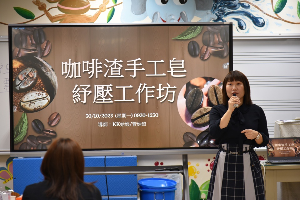 當天上午P4成長的天空的家長減壓工作坊,家長們學習如何製作環保咖啡渣手工梘,期望回家可與孩子共同製作,共度有意義的親子時間。