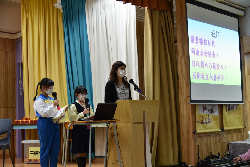 本校於11月28日舉行了本學年第三次周會及頒獎禮。高年級周會由廖美珊主任負責主講,低年級周會由高泳思老師主講,主講題目為「和諧校園」,周會經文記載在約翰福音13章34及35節 「我賜給你們一條新命令、乃是叫你們彼此相愛。我怎樣愛你們、你們也要怎樣相愛。你們若有彼此相愛的心、眾人因此就認出你們是我的門徒了。」