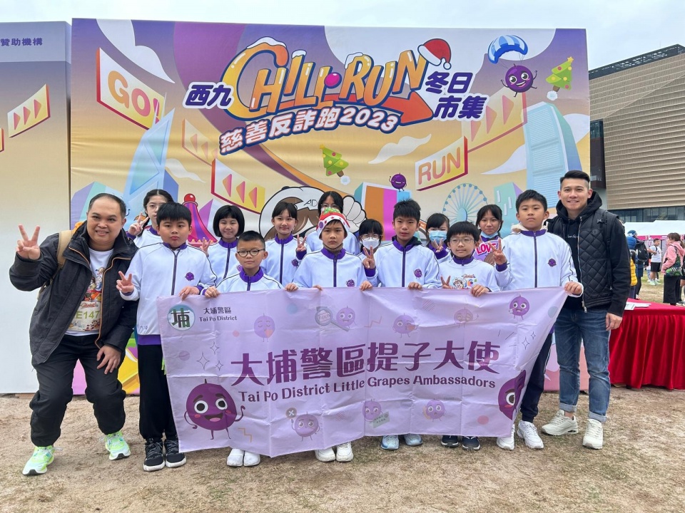 提子大使獲大埔警區邀請參加在「西九文化區藝術公園」舉行的慈善反詐跑活動。活動當天,大使們無懼寒冷天氣,在大埔警區指揮官馬偉卿總警司陪同下順利完成賽事,賽後獲香港警務處處長蕭澤頤先生嘉許及合照留念。