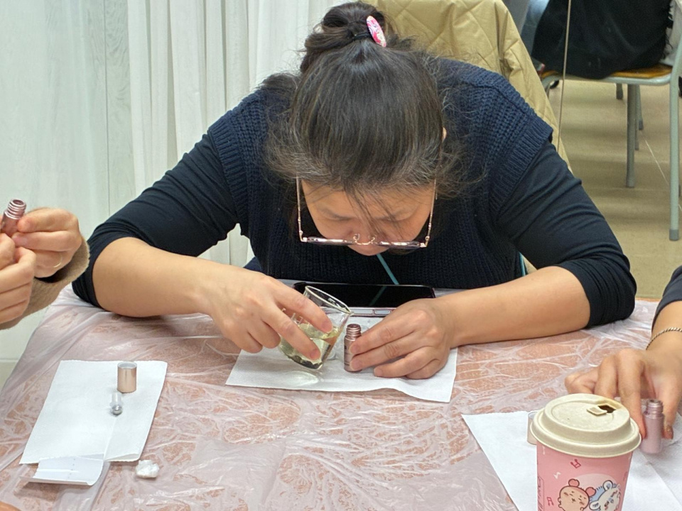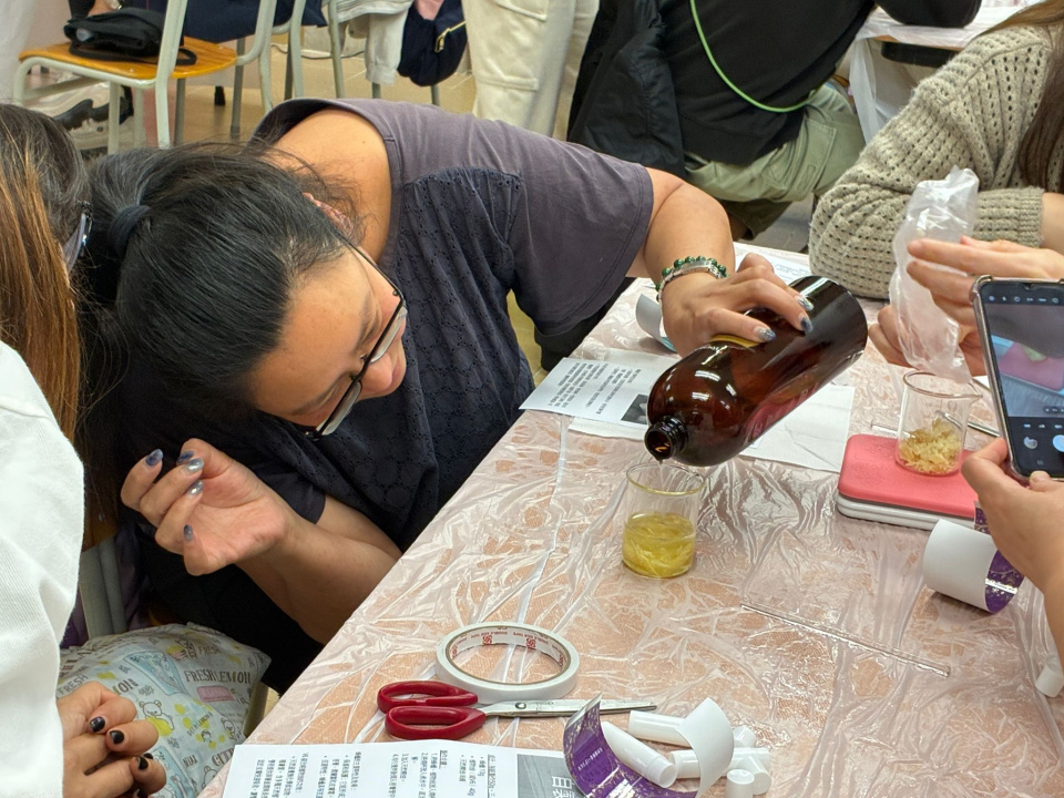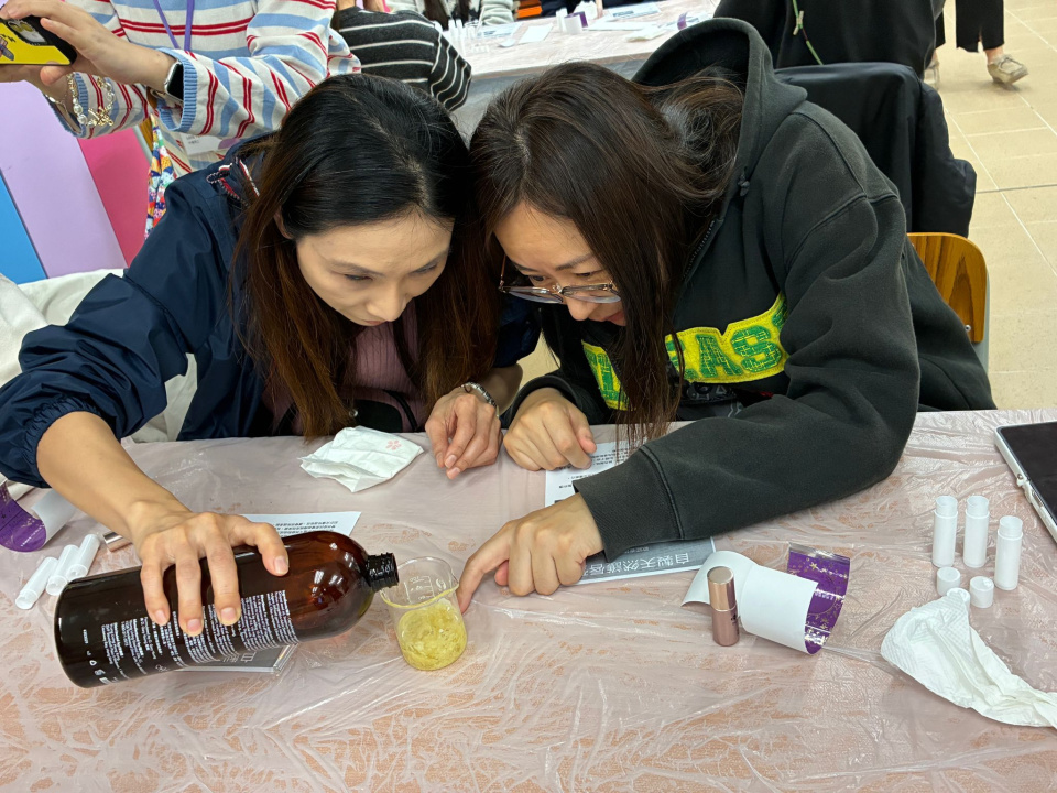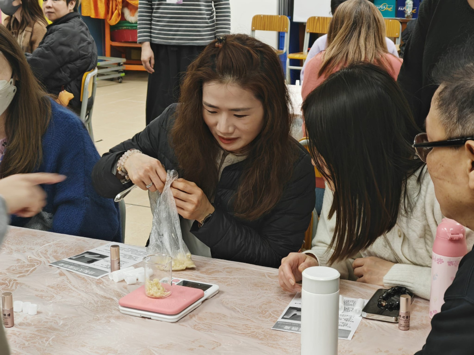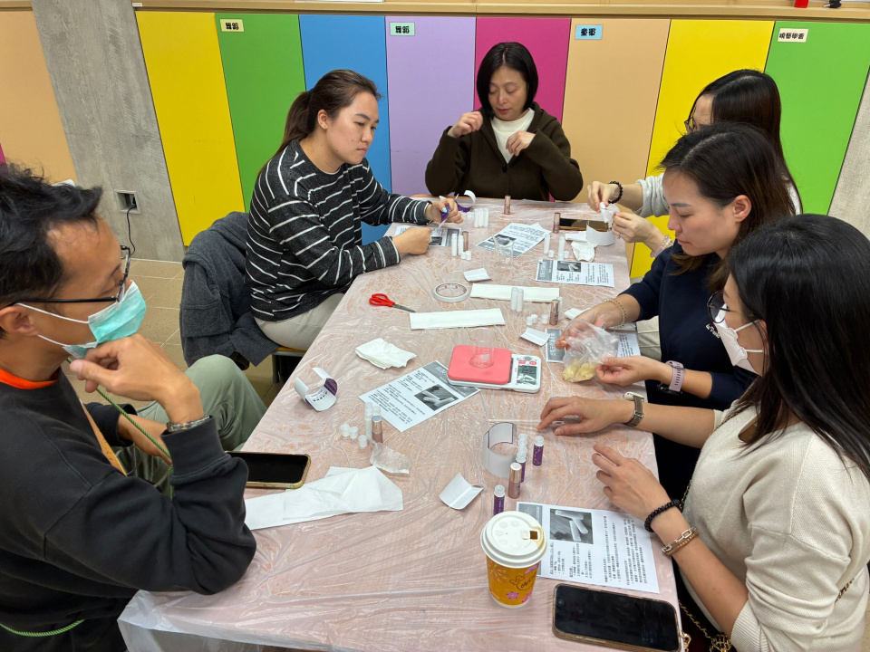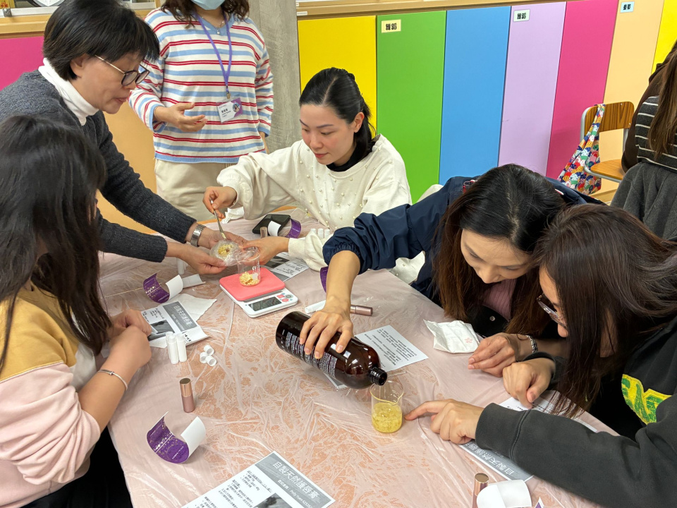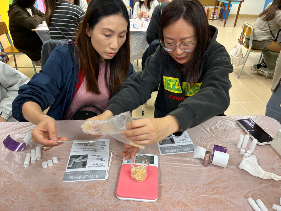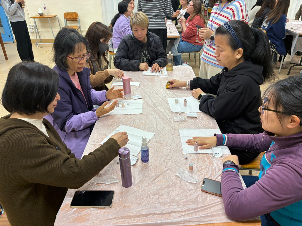 學校近日與睦鄰家庭服務中心合作,舉辦了災後家長情緒支援工作坊,同時邀請了輔導家庭治療師等在家長小組中提供支援。根據研究,香薰治療有助災難後,透過嗅覺的刺激,舒緩突發的情緒壓力,從負能量中抽離及歇息。席間,由香薰治療師帶領製作香薰滾珠棒及潤唇膏,參加者在手作期間,也在輔導人員的協助下打開話匣子,互相支持。除了學習如何使用精油放鬆情緒外,家長們亦相互分享子女的教養技巧,在家長活動中獲得連繫及支持。
