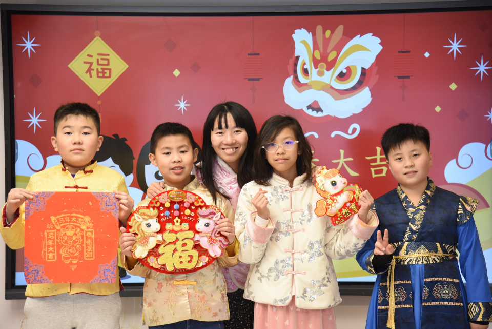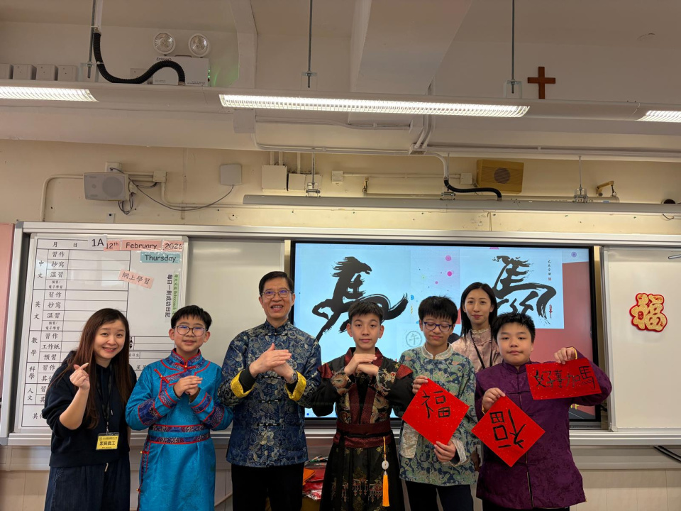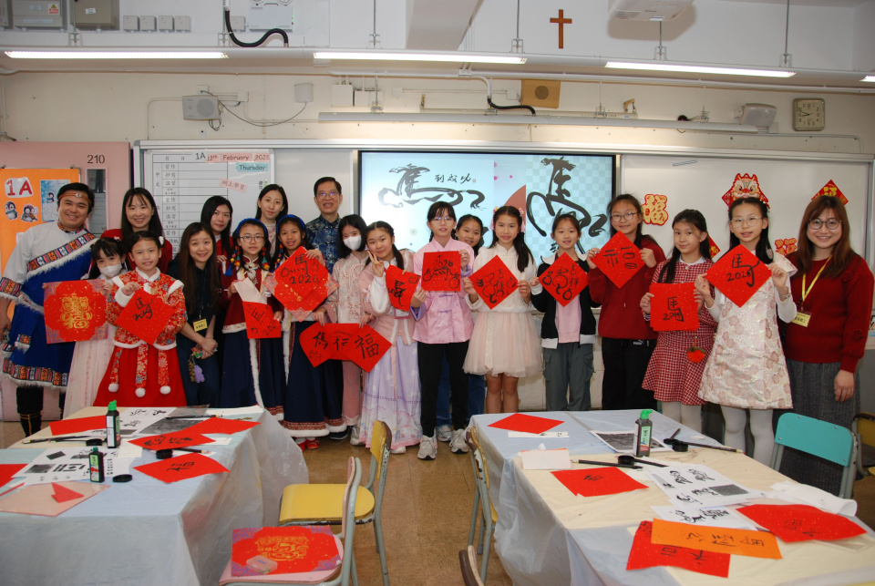 本年度中華文化日聚焦於我國少數民族與多元文化,展現豐富的民族風情。活動中,同學可以體驗傳統中國藝術,我們有幸能邀請教主堂的書法高手陳紹麟先生和楊楚傑校長蒞臨為學生們傳授傳統書法藝術。此外,活動讓家長及學生深入理解不同民族的習俗與生活方式,促進對我國文化的認識與尊重。這是一個珍貴的機會,讓同學們在互動中體會多元文化的美。今日亦是夢芹人團年的好日子, 校監歐陽兆基牧師、黃麗霞牧師、楊楚傑校長及陳嘉文校長特意「 回家」 與我們相聚, 聯同鄧依萍校長來一個「四代同堂」, 祝願所有夢芹人馬年進步,主恩滿溢。