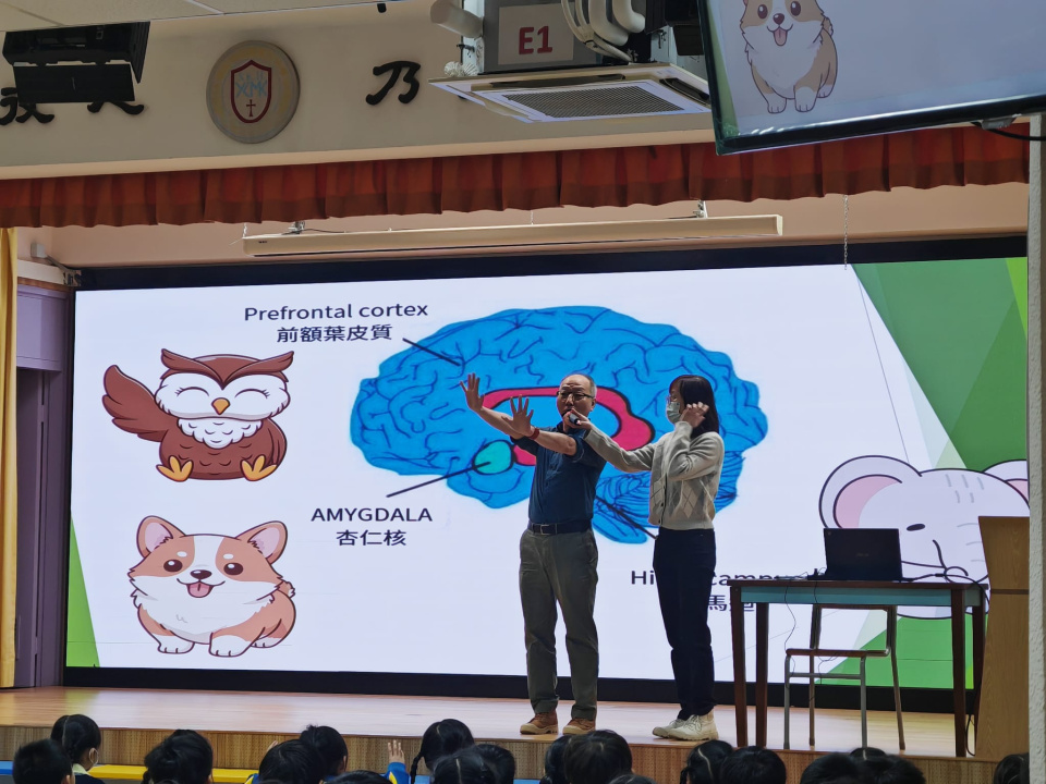 基督教香港信義會太和青少年綜合服務中心黃sir和周姑娘到校主持輔導講座,主題分別為「大腦動物特攻隊:我的情緒守護任務」及「大腦 CEO:陽光思維與情緒管理」。講座透過介紹三種可愛的動物角色,將大腦功能具象化。同時,透過辨識情緒觸發的身體信號,學習如何應付突如其來的事情。在講者的講解下,大家學習讓大腦「重新連線」和一些自我放鬆技巧,如腹式呼吸,成為自己情緒的智慧管理者。同學們都紛紛表示很有趣,獲益良多呢!