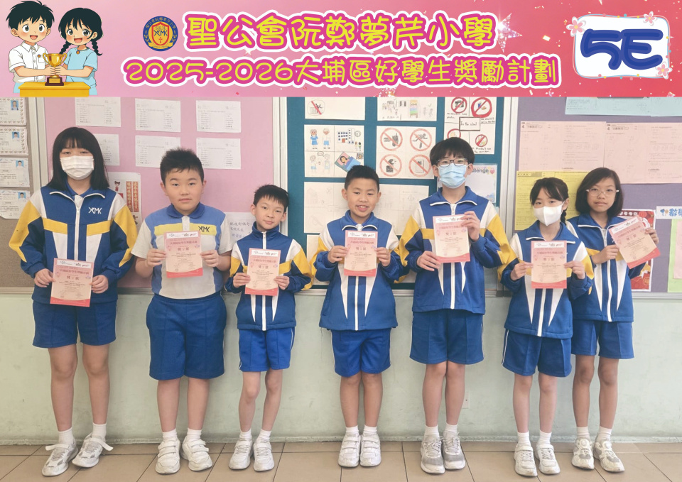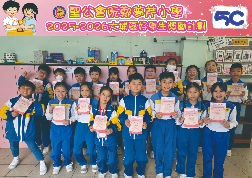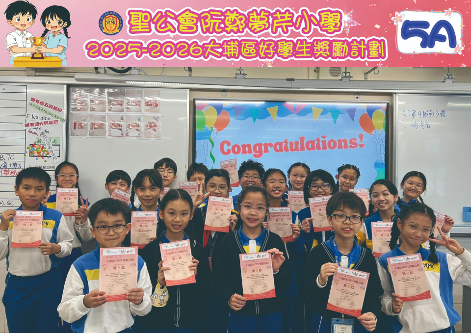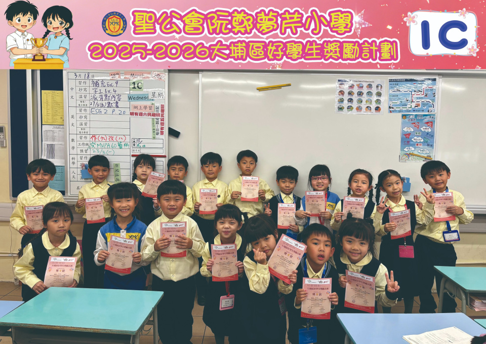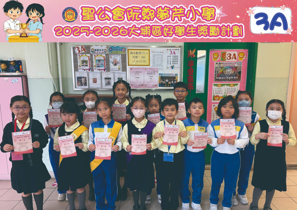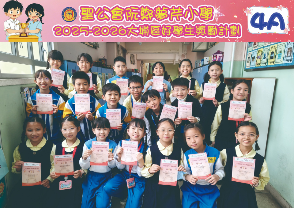 由大埔學校聯絡委員會舉辦的 2025/202『 大埔區好學生獎勵計劃 』,鼓勵大埔區學生積極進取,提昇自我形象。 本年度,本校有約四百多位學生獲得大埔區好學生獎狀,其中6A林思齊同學、6B蔣栢麟同學和6C劉思惠同學更獲得突出學生獎,恭喜各位獲獎同學!