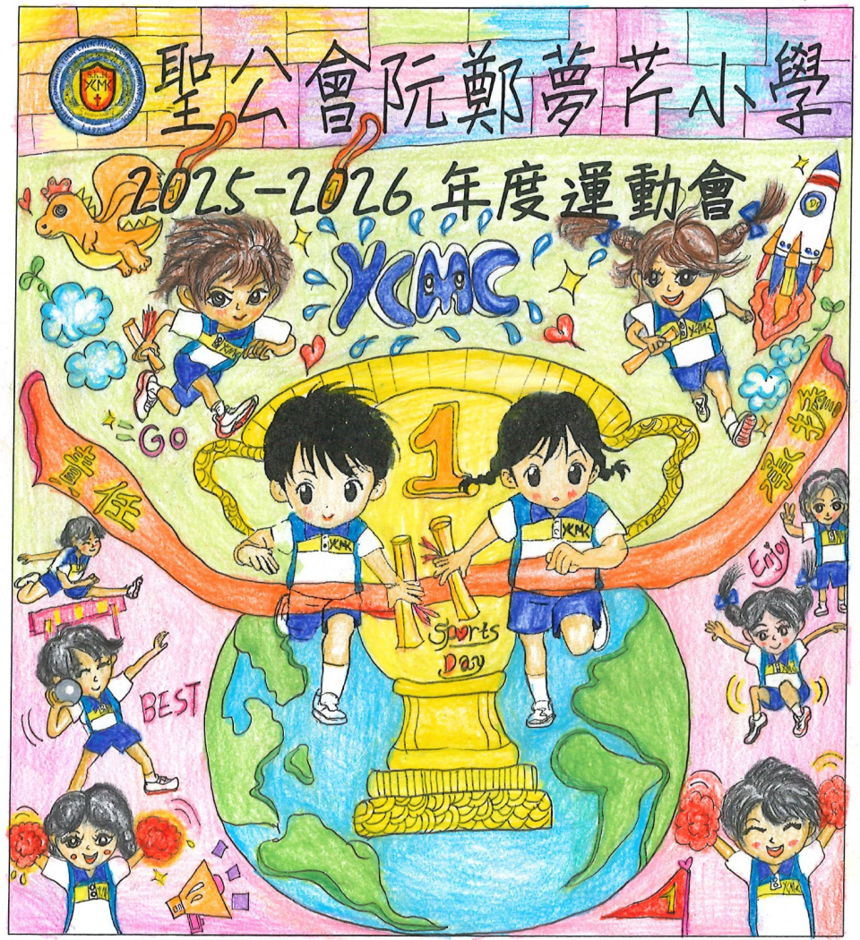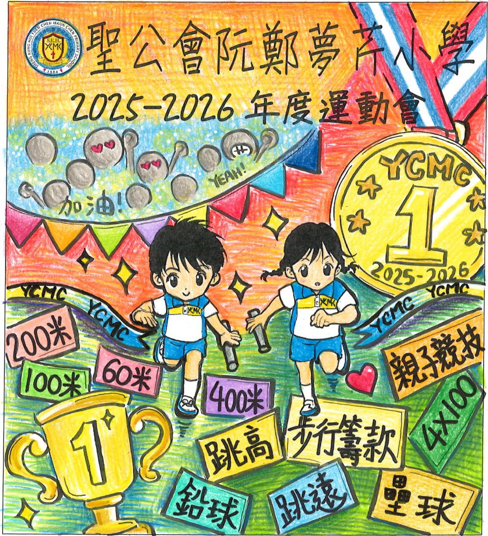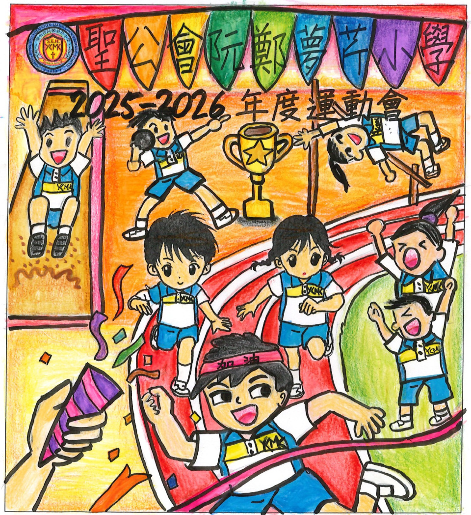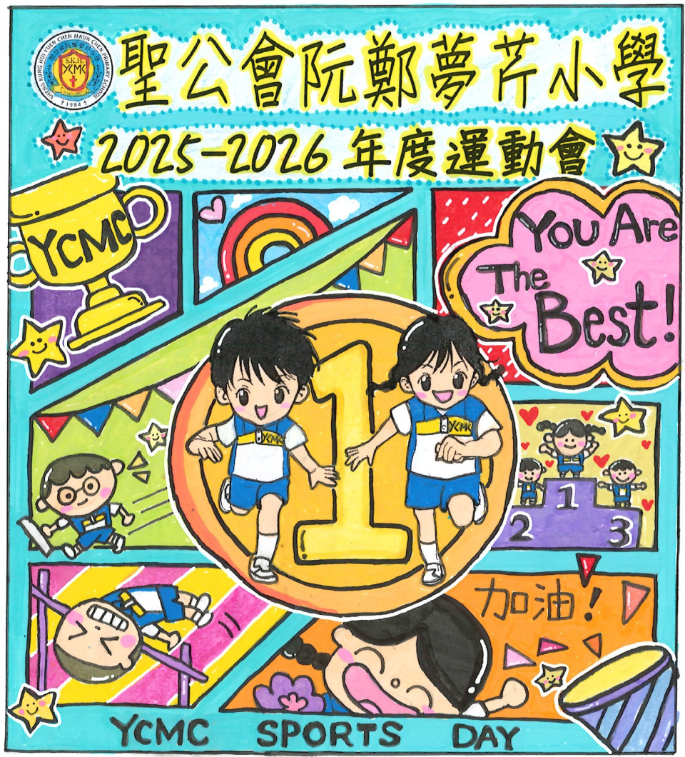 為了迎接運動會的到來,體育科舉行了「運動會場刊封面設計比賽」。同學們非常踴躍參與是次比賽,學校收到的作品都非常優秀。最後,當中有10位同學的作品脫頴而出獲獎,這些獲獎的作品已設計成海報,並張貼在學校各樓層。