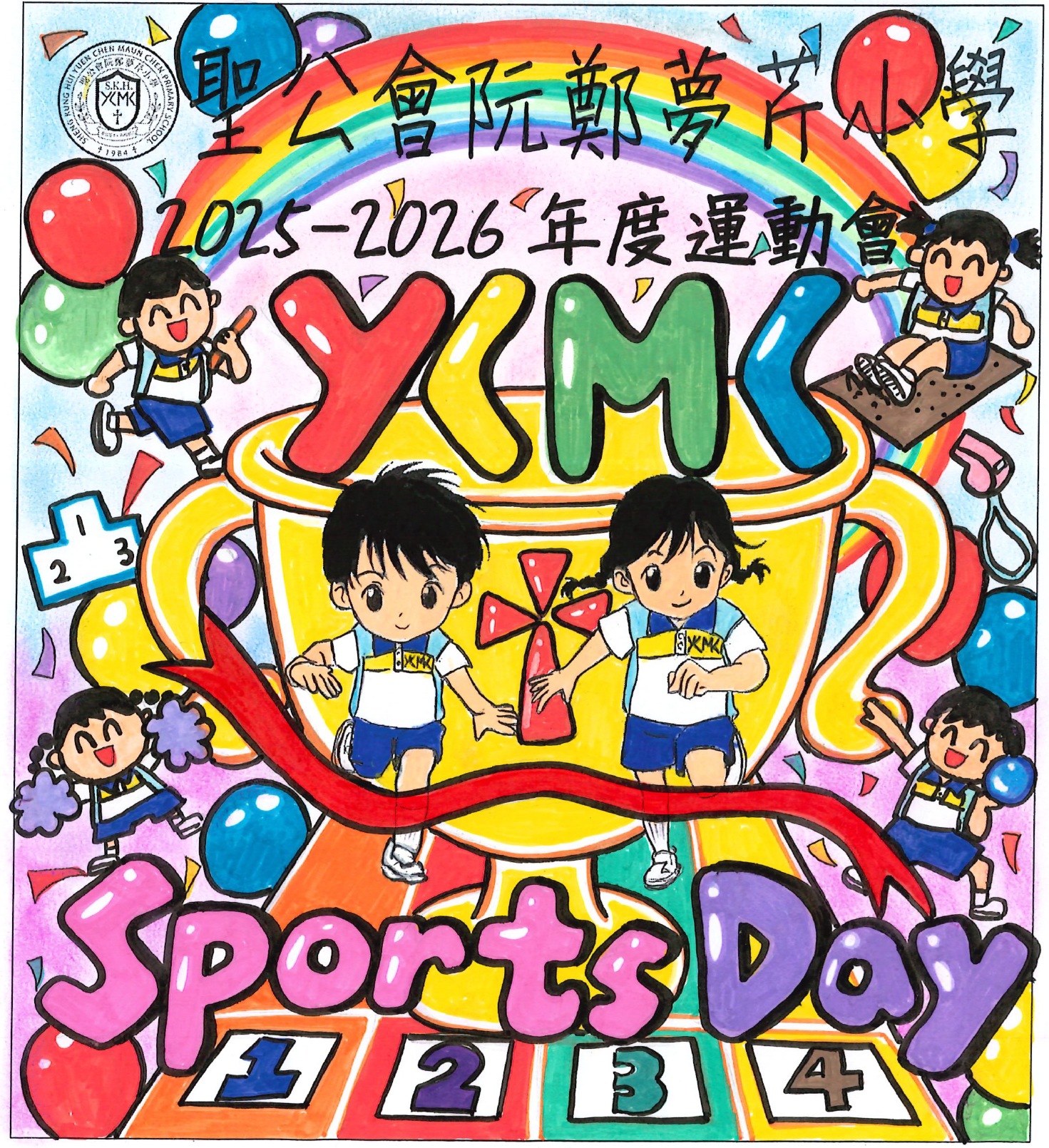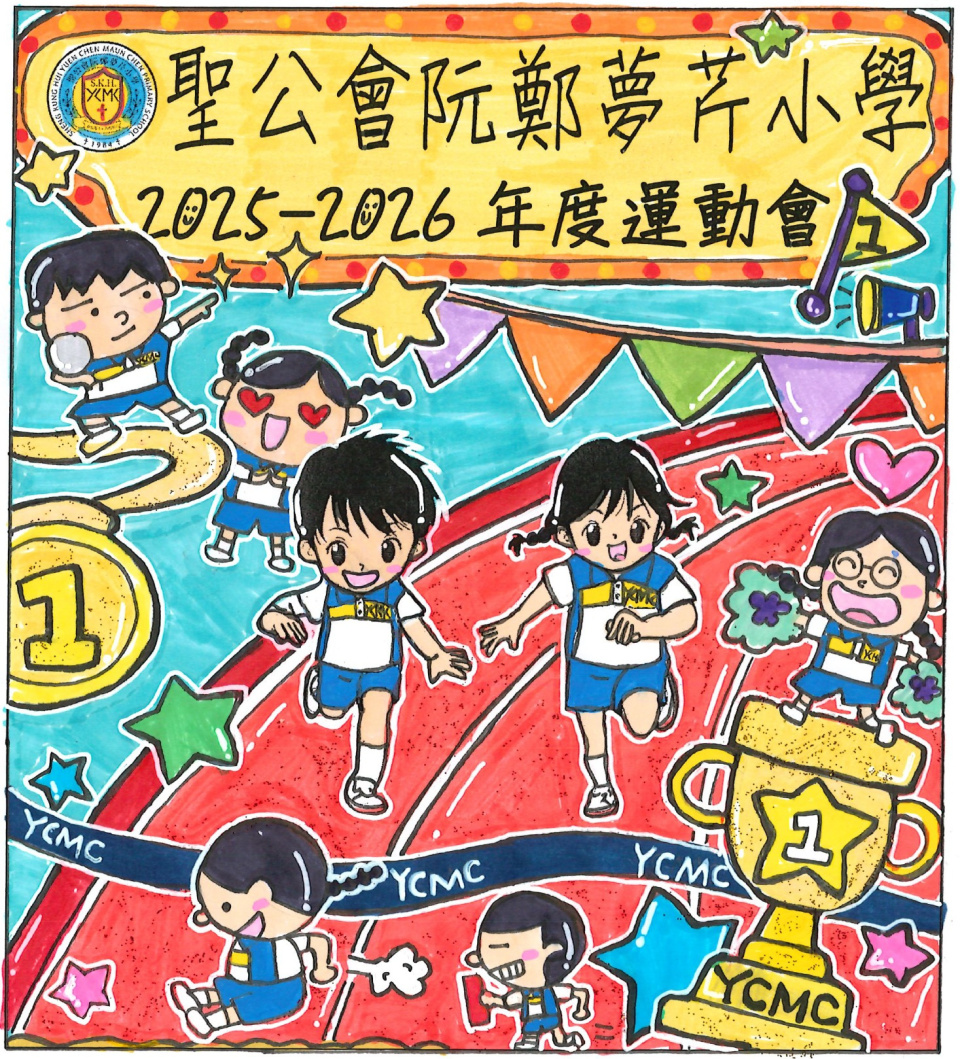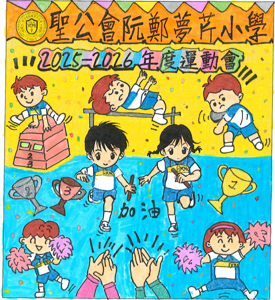 為了迎接運動會的到來,體育科舉行了「運動會場刊封面設計比賽」。同學們非常踴躍參與是次比賽,學校收到的作品都非常優秀。最後,當中有10位同學的作品脫頴而出獲獎,這些獲獎的作品已設計成海報,並張貼在學校各樓層。