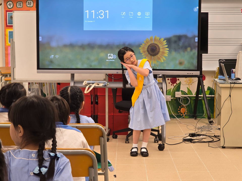 本校「普通話夢芹講場」已於10月20日午息時間,在活動 室順利進行。活動邀請了六位來自不同年級、本年度將會參加 校際朗誦節的同學,為大家帶來精彩的普通話獨誦表演。現場 氣氛熱烈,表演的同學聲情並茂。是次活動不僅為同學提供了 觀摩切磋、交流學習的寶貴機會,更讓表演者得以累積舞台經驗敢於表演。