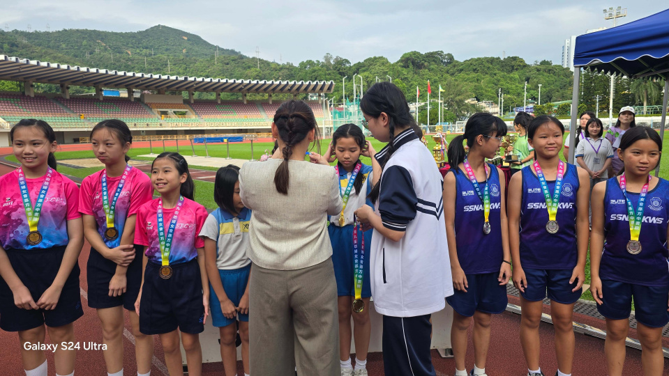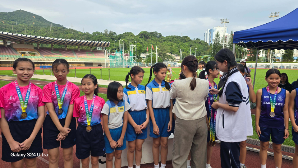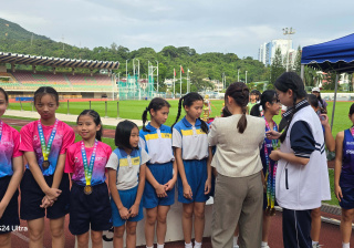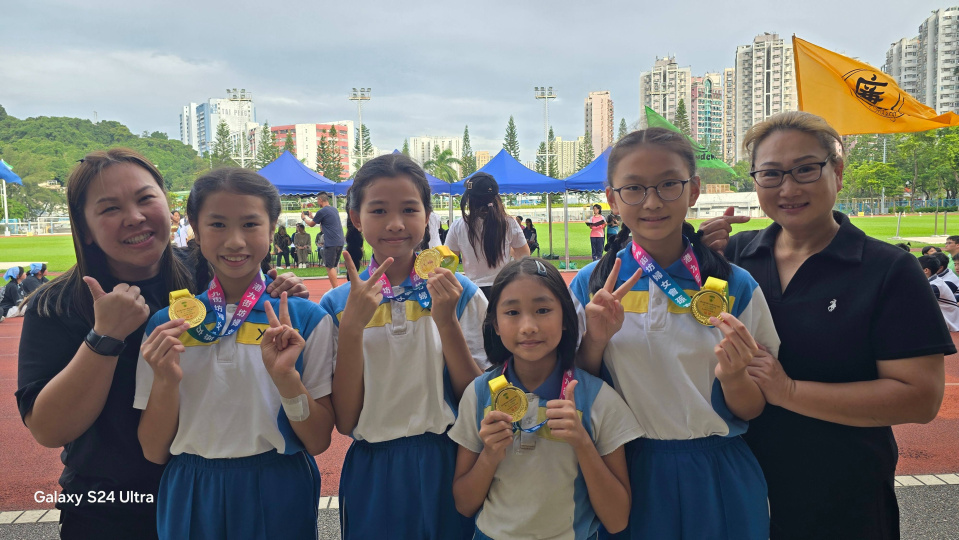 本校田徑隊同學參加港九街坊婦女會孫方中書院友校接力比賽,榮獲女子組冠軍。
