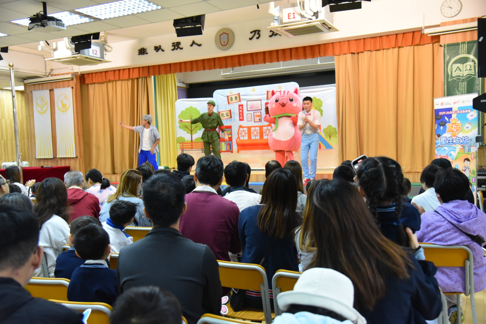 學校參加了由民政及青年事務局聯同公民教育委員會主辦的活動 —《公民互動劇場》,希望透過沉浸式的學習體驗,加深學生的國家觀念、民族意識及國民身份認同感,寓教於樂!劇目名爲《王子的重生之旅》,講述一個小學生「王子」的穿越時空之旅。學生透過觀賞劇場,讓學生思考如何做個愛國小公民,同時也加強學生對核心公民價值「尊重」、「負責」、「關愛」和「包容」的認識。