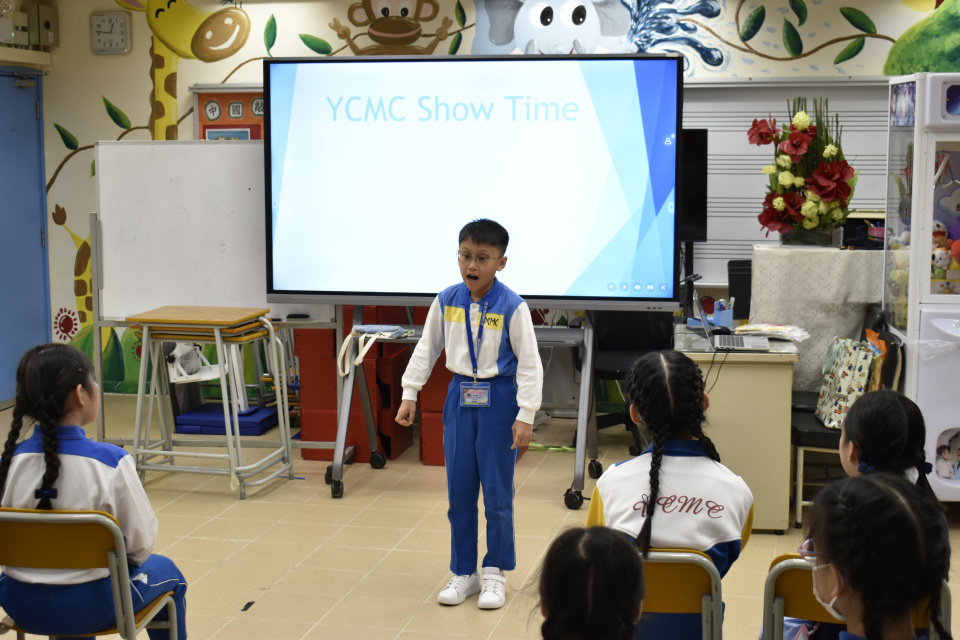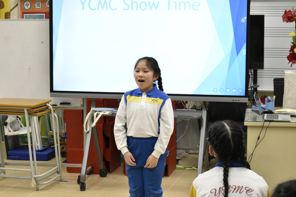Six students took part in YCMC Show Time at lunch recess on 24th October, 2025. They were 3B Colin Yeung, 3D Timothy Cheung, 3D Chester Yeung, 4A Amber Au, 4C Gemma Cheung and 5C Flora Yuen. They performed their solo verses that will be performed in the coming Speech Festival competition. Their performance was excellent !