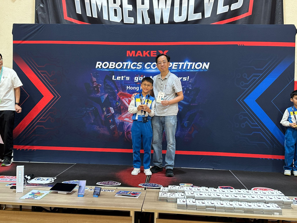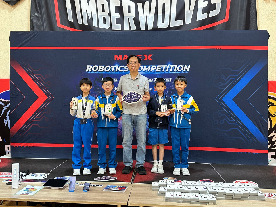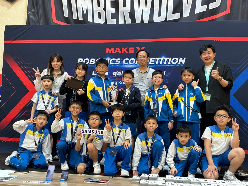 另外,於Starter賽項中,7位同學運用mBot 進行編程及手控任務,6A鄺昱帆及6C麥芮朗同學更於當天發揮出團隊合作性,奪得全港季軍。6B蔣栢麟、6B尹睿熙、5B王俊堯及4C歐梓信同學則獲「童心設計師」 第四名。靠著同學們的努力,本校更奪得全港小學組全場總亞軍。