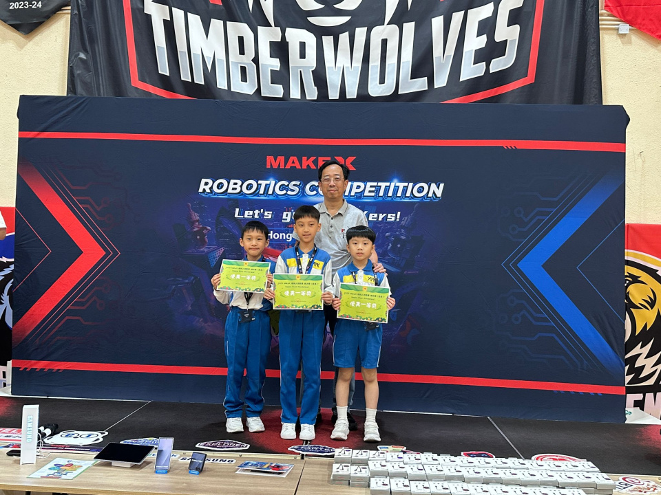 本校13位同學代表本校參加「 2025MakeX機械人挑戰賽 (香港) 」。其中Inspire Fruit wonderland賽項,6位2-3年級同學利用mTiny機械人進行即場編程任務,3A蔡以善奪得全港季軍、 3D楊子峻獲 「童心設計師」 第四名及 3A許奕謙獲「童心設計師」第五名,3B楊子聰、2C潘嘉軒及2A李承熹均獲優異一等獎,表現值得讚賞。