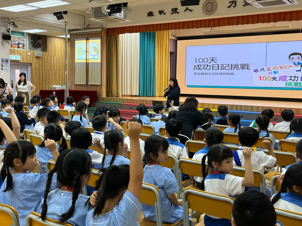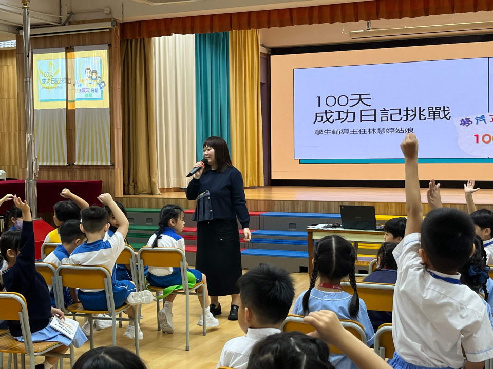 在這三堂級課中,學生輔導主任林姑娘向同學們介紹了本年度的校本輔導活動——《100天成功日記挑戰》。同學們反應熱烈,紛紛表示期待參與。我們也誠邀家長一同加入,目前已有不少家長踴躍響應。同學們完成挑戰後將日記交回輔導組,即可換取「成功襟章」,並可於學期結束前佩戴。若同學們和家長們一起在學期結束前完成挑戰,都能從鄧校長手中獲得成功挑戰的獎狀呢!