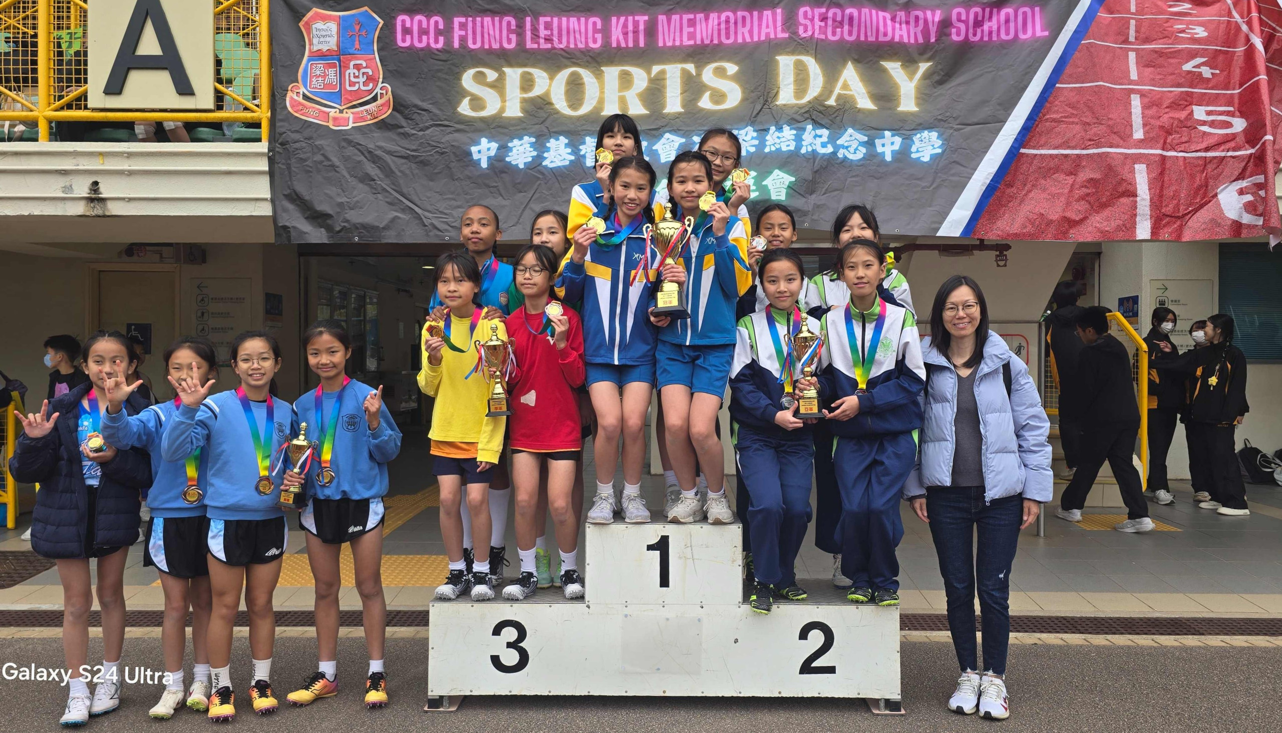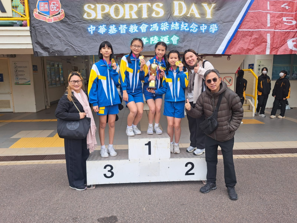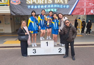 本校田徑隊同學參加中華基督教會馮梁結紀念中學友校接力賽,榮獲女子組冠軍。
