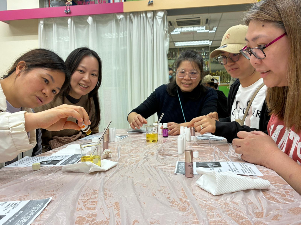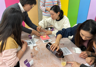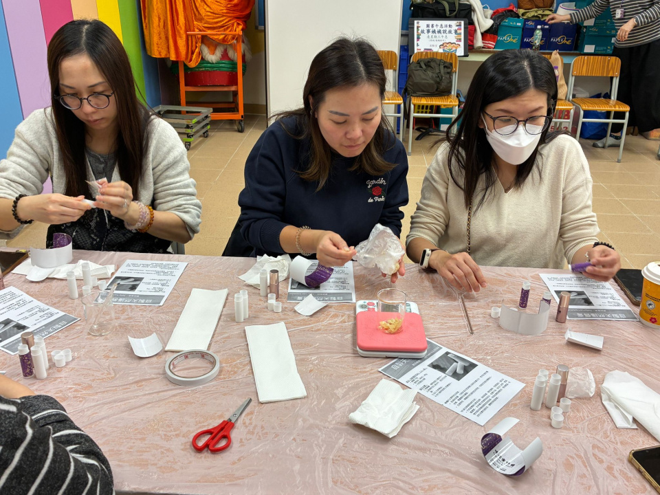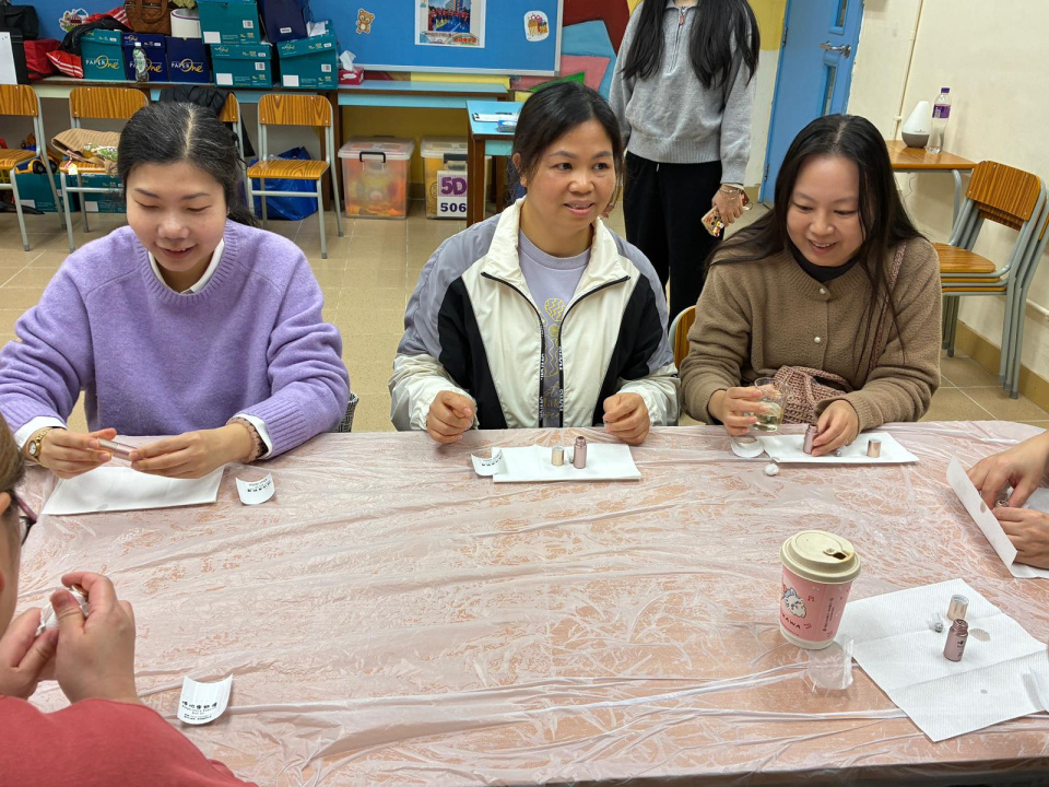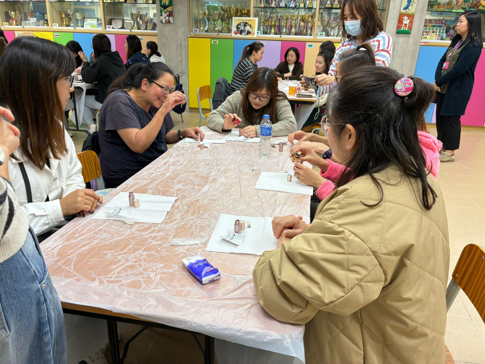 學校近日與睦鄰家庭服務中心合作,舉辦了災後家長情緒支援工作坊,同時邀請了輔導家庭治療師等在家長小組中提供支援。根據研究,香薰治療有助災難後,透過嗅覺的刺激,舒緩突發的情緒壓力,從負能量中抽離及歇息。席間,由香薰治療師帶領製作香薰滾珠棒及潤唇膏,參加者在手作期間,也在輔導人員的協助下打開話匣子,互相支持。除了學習如何使用精油放鬆情緒外,家長們亦相互分享子女的教養技巧,在家長活動中獲得連繫及支持。