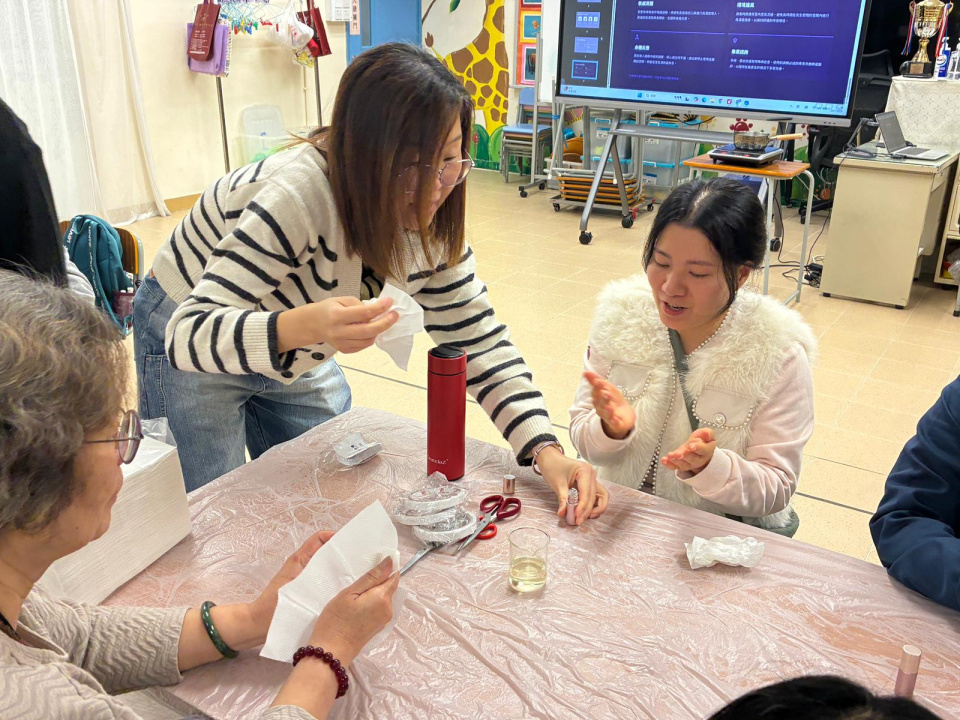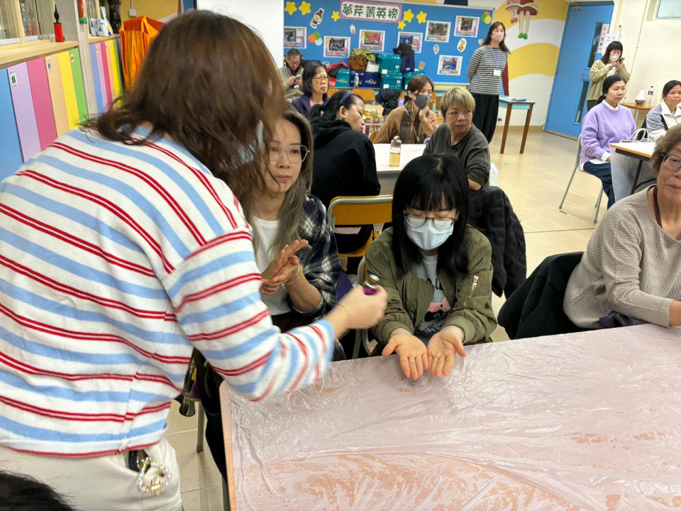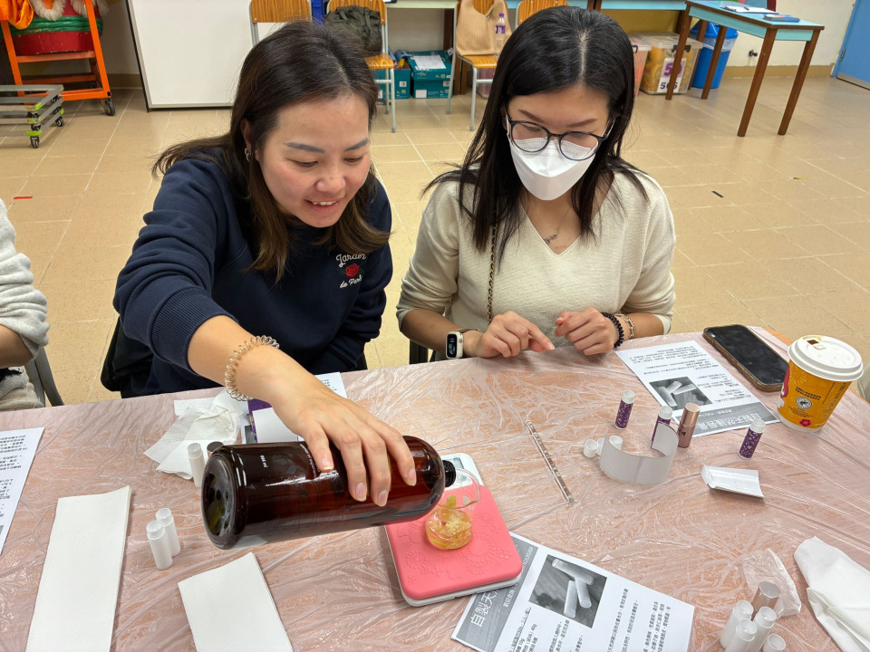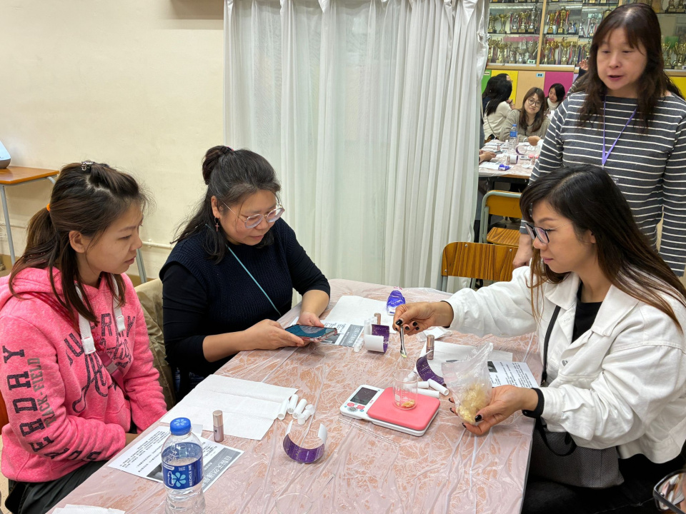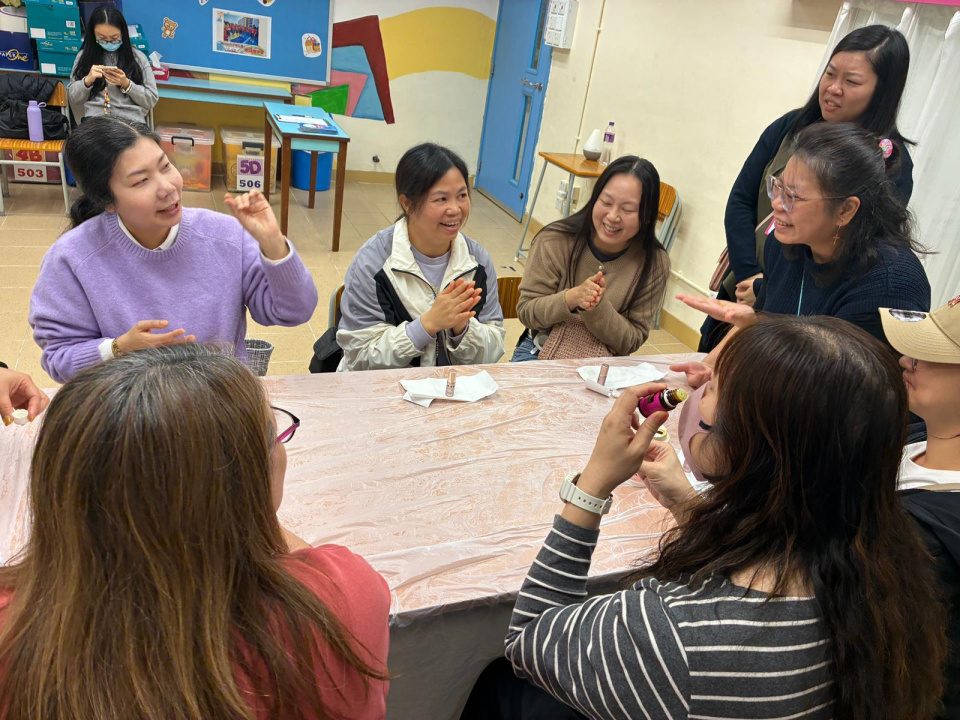 學校近日與睦鄰家庭服務中心合作,舉辦了災後家長情緒支援工作坊,同時邀請了輔導家庭治療師等在家長小組中提供支援。根據研究,香薰治療有助災難後,透過嗅覺的刺激,舒緩突發的情緒壓力,從負能量中抽離及歇息。席間,由香薰治療師帶領製作香薰滾珠棒及潤唇膏,參加者在手作期間,也在輔導人員的協助下打開話匣子,互相支持。除了學習如何使用精油放鬆情緒外,家長們亦相互分享子女的教養技巧,在家長活動中獲得連繫及支持。