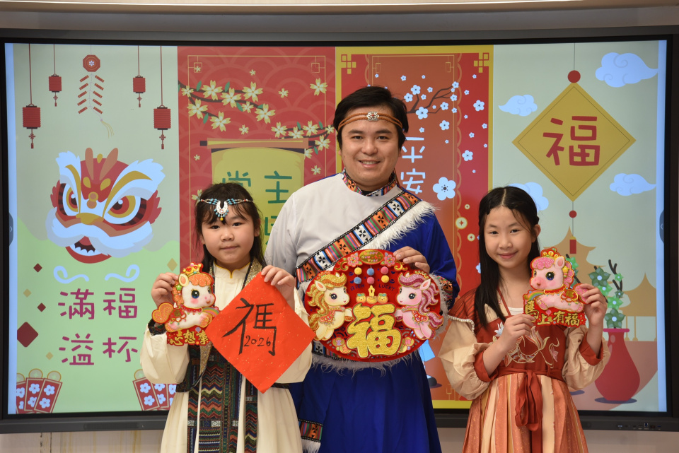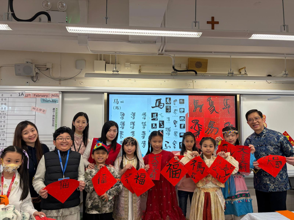 本年度中華文化日聚焦於我國少數民族與多元文化,展現豐富的民族風情。活動中,同學可以體驗傳統中國藝術,我們有幸能邀請教主堂的書法高手陳紹麟先生和楊楚傑校長蒞臨為學生們傳授傳統書法藝術。此外,活動讓家長及學生深入理解不同民族的習俗與生活方式,促進對我國文化的認識與尊重。這是一個珍貴的機會,讓同學們在互動中體會多元文化的美。今日亦是夢芹人團年的好日子, 校監歐陽兆基牧師、黃麗霞牧師、楊楚傑校長及陳嘉文校長特意「 回家」 與我們相聚, 聯同鄧依萍校長來一個「四代同堂」, 祝願所有夢芹人馬年進步,主恩滿溢。