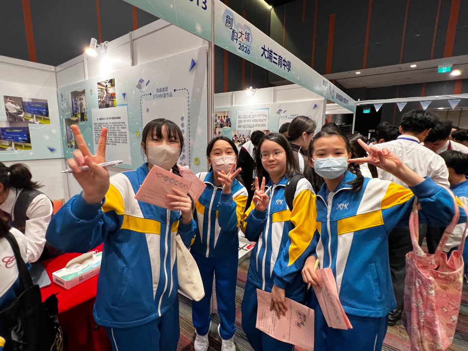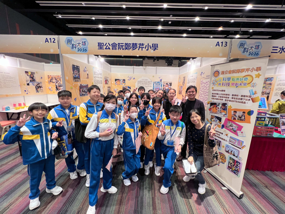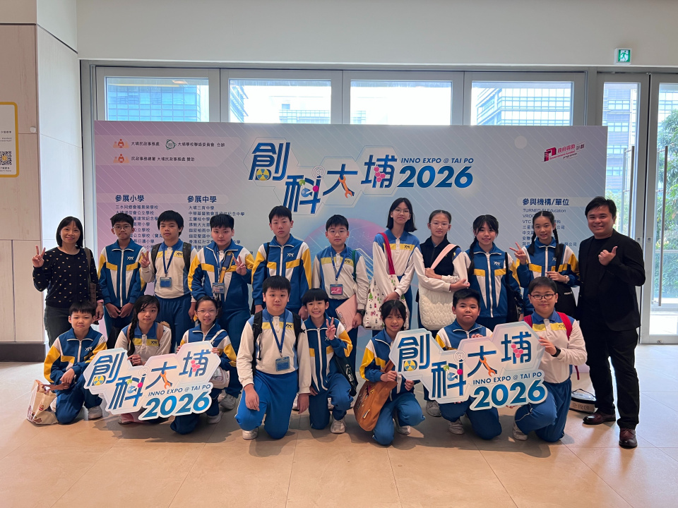 早前,六年級學生透過常識及電腦科,深入了解創新科技的重要性。為配合課程發展,校方特意安排學生前往香港科學園參與『創科@大埔 2026』活動。學生不僅能在活動中親身體驗各項嶄新的科技發明,更可觀摩大埔區內豐富的 STEAM 教育成果,進一步擴闊他們的科技視野。