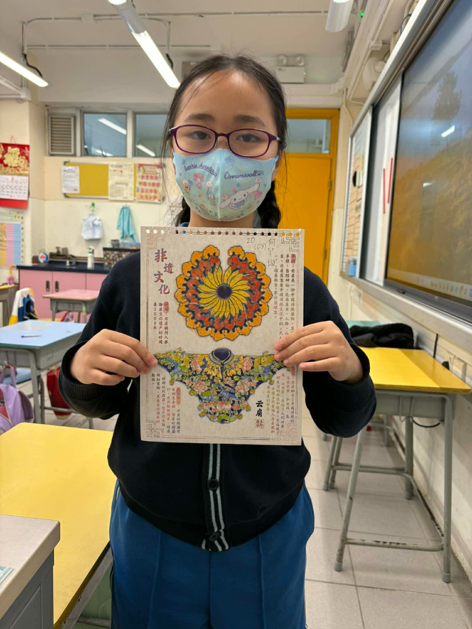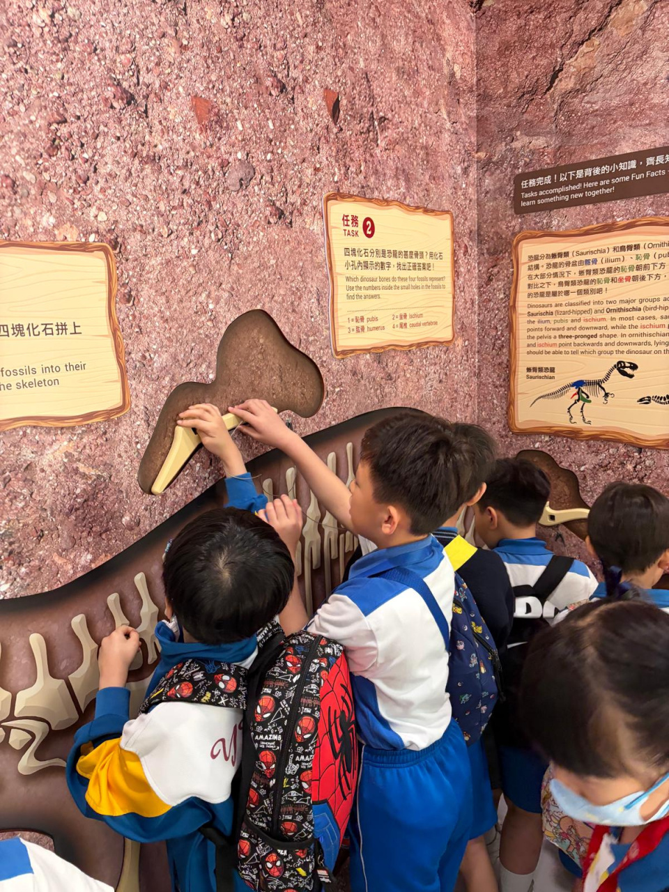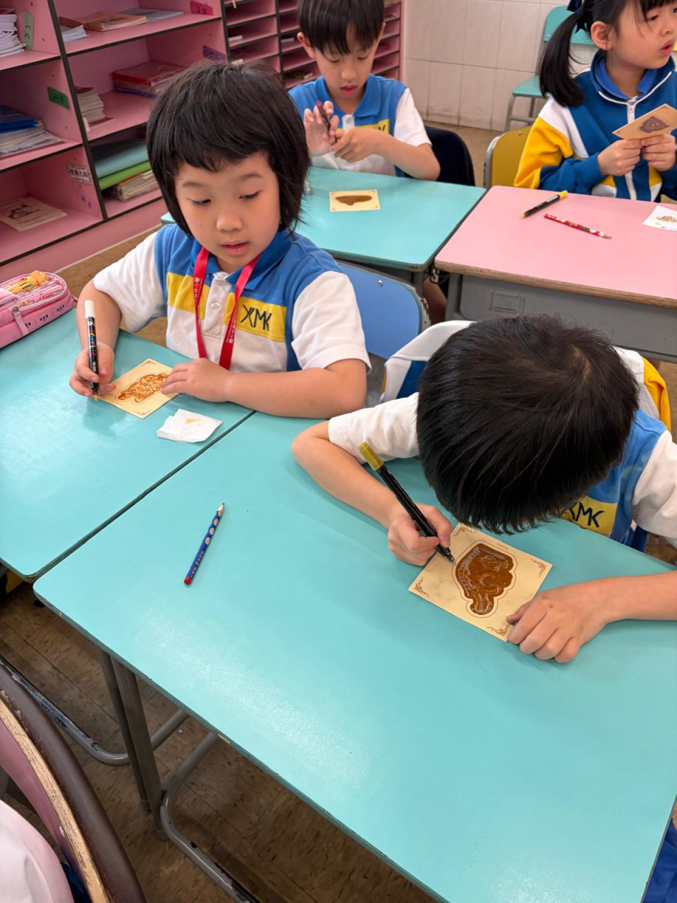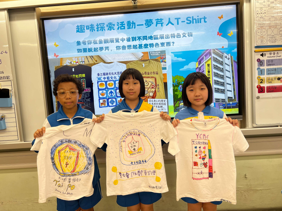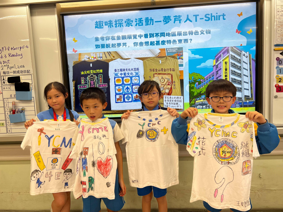 一年級學生參觀了文物探知館,及後回校製作「文物錫刻」;二年級學生參觀了文化博物館,回校後進行「文物復修」活動,從而欣賞文物的美。三年級學生參觀了大館,然後回校參與大館歷史棋盤製作活動,把大館歷史活現於遊戲之中;四年級學生參觀了歷史博物館,然後回校製作「夢芹文物T-Shirt」,把夢芹具象徵性的物品畫在T-Shirt中;五年級學生到了海洋公園參與「大熊貓探索之旅」,然後把參觀所見,利用AI製作小夢小芹保育大熊貓的相片;六年級學生則到了故宮文化博物館,再透過AI製作文物生活物品的合成相片,展現出活化文物的創意。